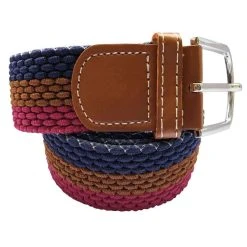 Manufactured from woven fabric is this navy/wine/brown men’s horizontal stripe woven belt by the designer Bassin and Brown. It measures 106cm(length) x 4cm(width). Also the navy/wine/brown belt is designed in a striped pattern, All the belts come complete with bassin and brown packaging. The Bassin and Brown Horizontal Stripe Woven Belt – Navy/Wine/Brown offers just the right amount of stretch and firmness for the man on the go. With its horizontal striped design in striking colours, you can create a trendy, strong look when worn with trousers, casual slacks, chinos or jeans. Makes the ideal gift for that man.