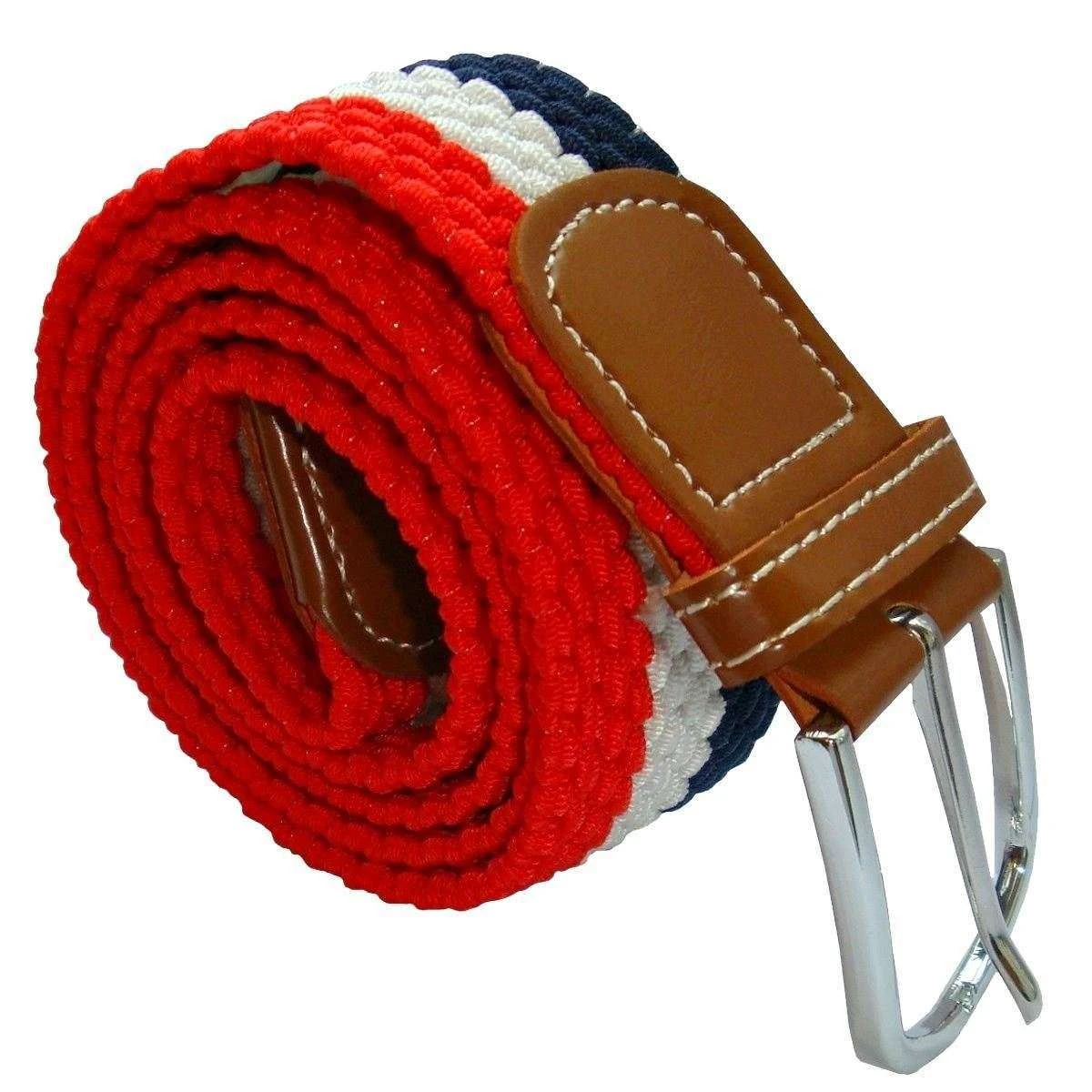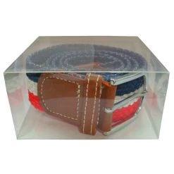 Manufactured from woven fabric is this red/white/navy men’s horizontal stripe woven belt by the designer Bassin and Brown. It measures 106cm(length) x 4cm(width). Also the red/white/navy belt is designed in a striped pattern, All the belts come complete with bassin and brown packaging. The Bassin and Brown Horizontal Stripe Woven Belt – Red/White/Navy was crafted using only the highest quality woven waxed cord that you deserve. With its elasticated fabric, this belt stretches for size adjustment. The striking colours allow you to complete your casual slacks, chinos, jeans and trousers for that well put together look.
