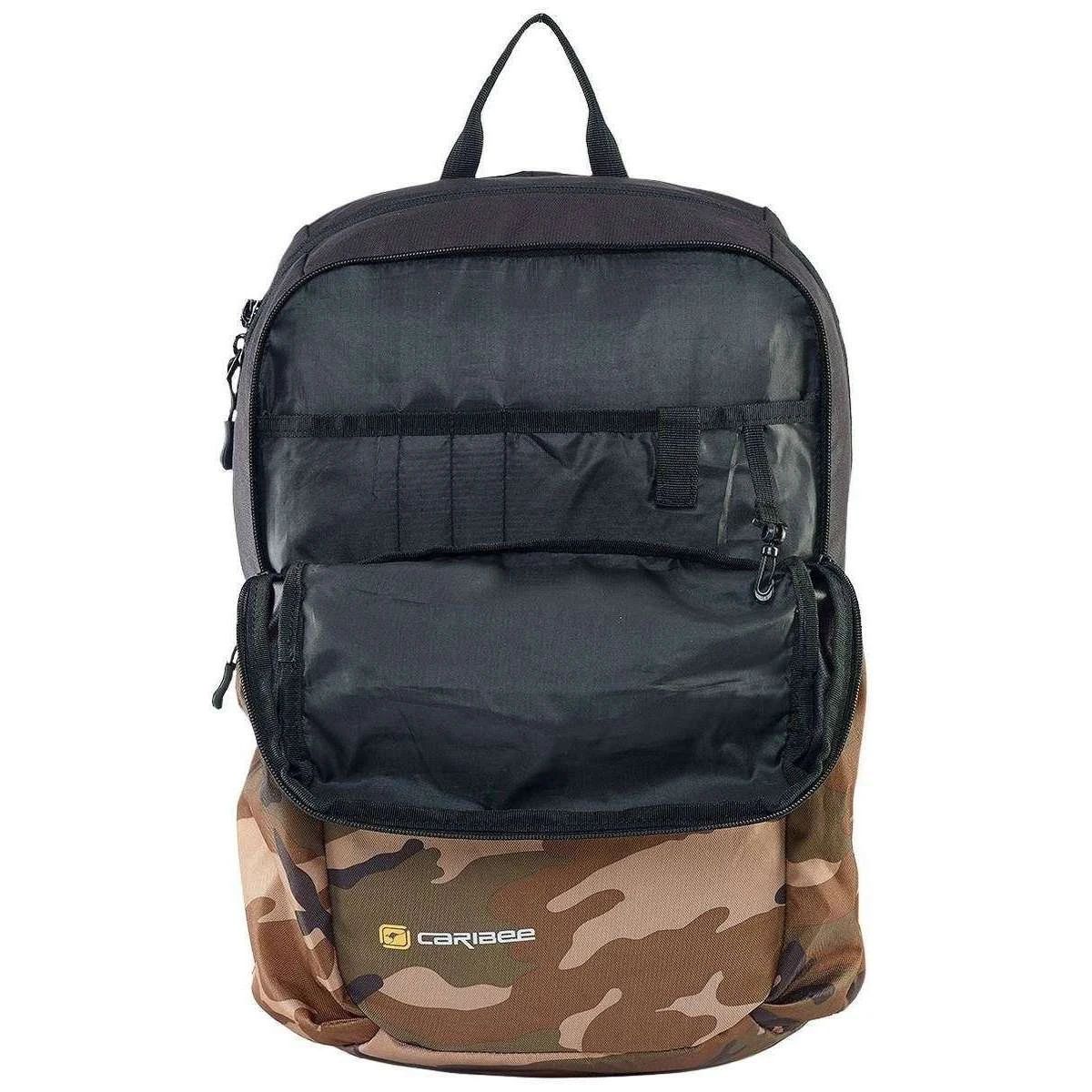 This unisex cub 28 retro backpack by the brand Caribee is made from polyester and is showcased in green. It measures 48cm(height) x 30cm(width) x 18cm(depth). All the bags come complete with caribee tags. The Caribee Cub 28 Retro Backpack – Auscam Camo has a triple compartment design with a large A4 size section that has a padded laptop sleeve, mid pocket with organiser panel and a front zip accessory pocket. Its retro twist gives you a more modern design that a plain one to take away on adventures with you. Guaranteed not to disappoint, this has also has a size water bottle pocket so give you less to carry in your hands.