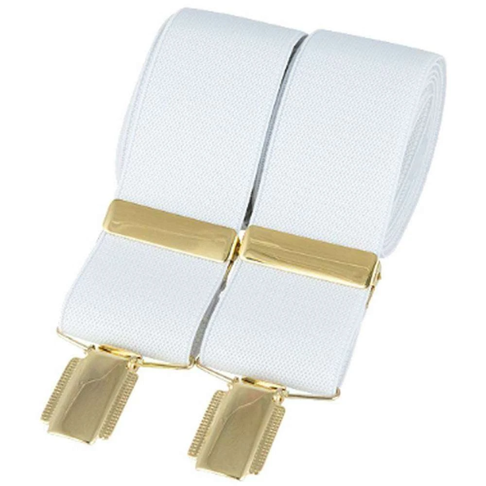 This David Van Hagen classic brace has put a contemporary twist on vintage chic. Luxurious and stylish, these sophisticated braces are an essential. Featuring fully elasticated, adjustable straps in white with gold metal belt clips, they are well-fitting as well as fashionable. Well-designed, this David Van Hagen brace is guaranteed to make you stand out from the crowd, whilst adding extra style to your choice of outfit.