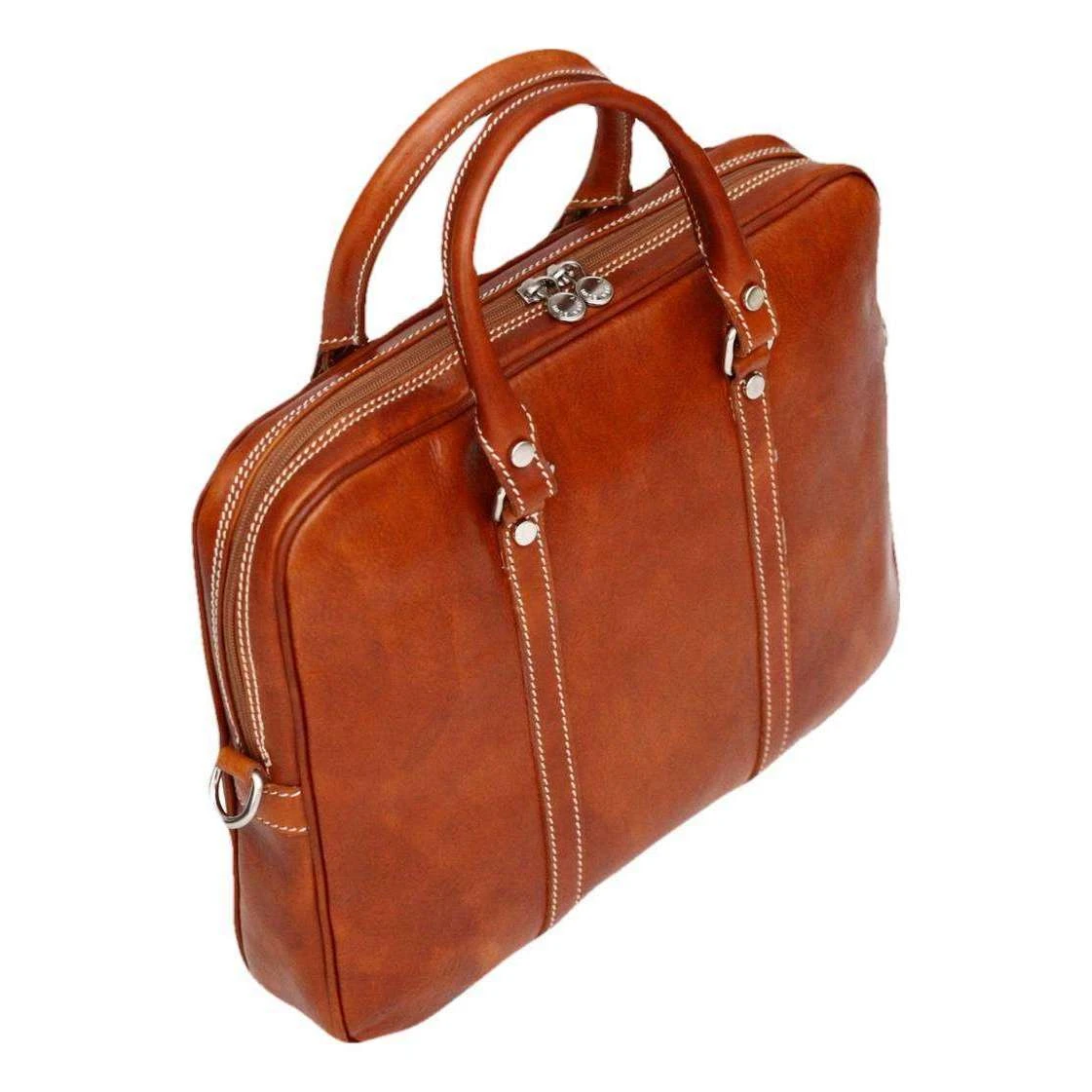 This twin handle briefcase for men is fashioned by the brand David Van Hagen in a tan colour and is made from vegetable tanned leather. It measures 38cm(height) x 30cm(width) x 7cm(depth). David Van Hagen have made this twin handle briefcase in Italy. All the bags come complete with tags. The David Van Hagen Twin Handle Briefcase – Tan would make a practical and suitable bag for someone who is going to a meeting or presentation. Manufactured with flawless amount of space, this piece provides pen loops, two multi-function slip pockets and one large zipped pocket all on the inside to keep you organised when on the go. With a detachable shoulder strap and two holdall handles, it lets you carry it in multiple ways for maximum comfort.