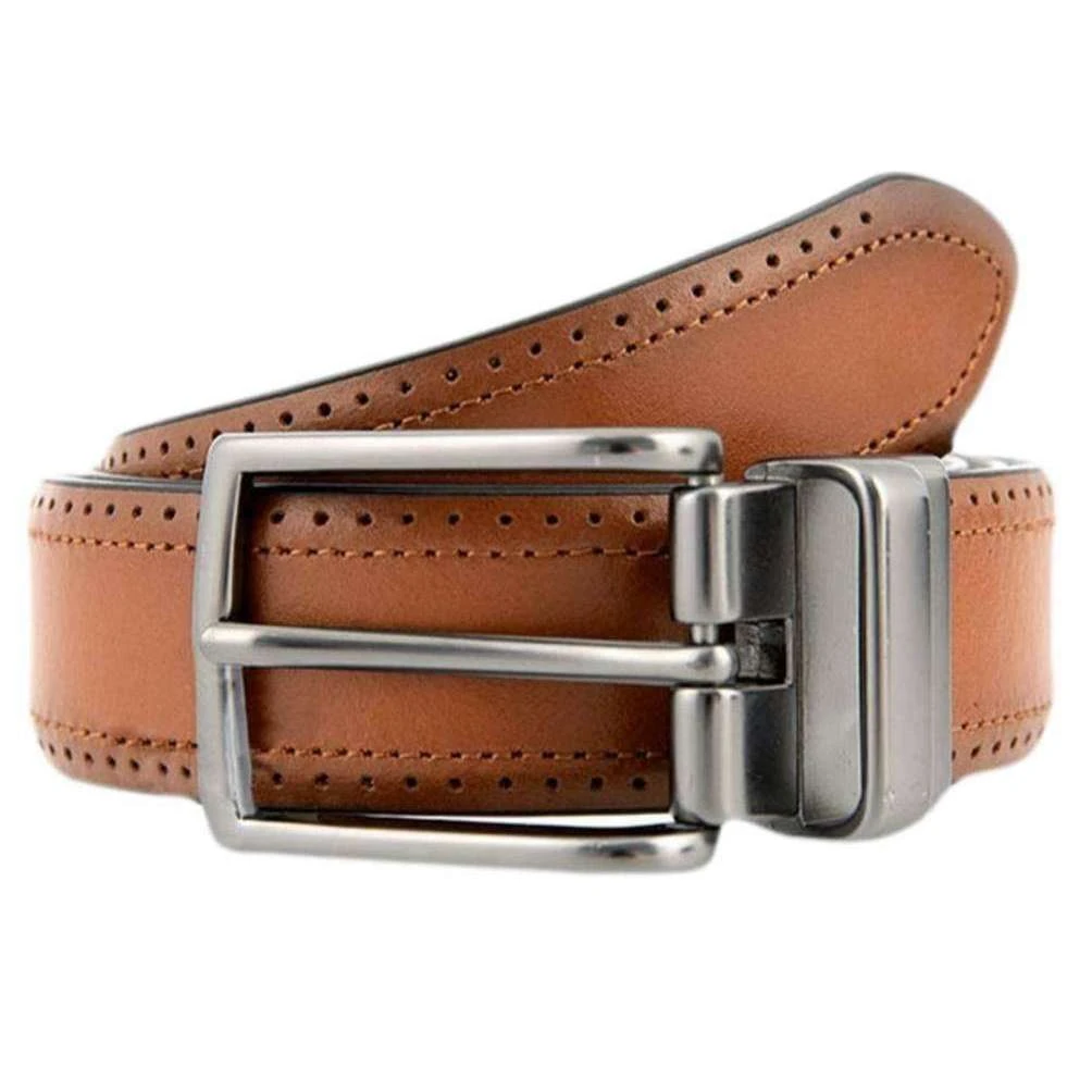 Perfect for men is this Dents black/tan brogue style reversible leather belt, it is also made from 100% cow leather. It measures 3.2cm(width). All the belts come complete with dents tags. The Dents Brogue Style Reversible Leather Belt – Black/Tan features brogue style detailing that creates a sophisticated look ideal for any gent. It has been crafted from quality materials that are durable as well as stylish. It is versatile as you can wear it either way depending on your outfit. It has been finished with gunmetal fittings and a single keeper.