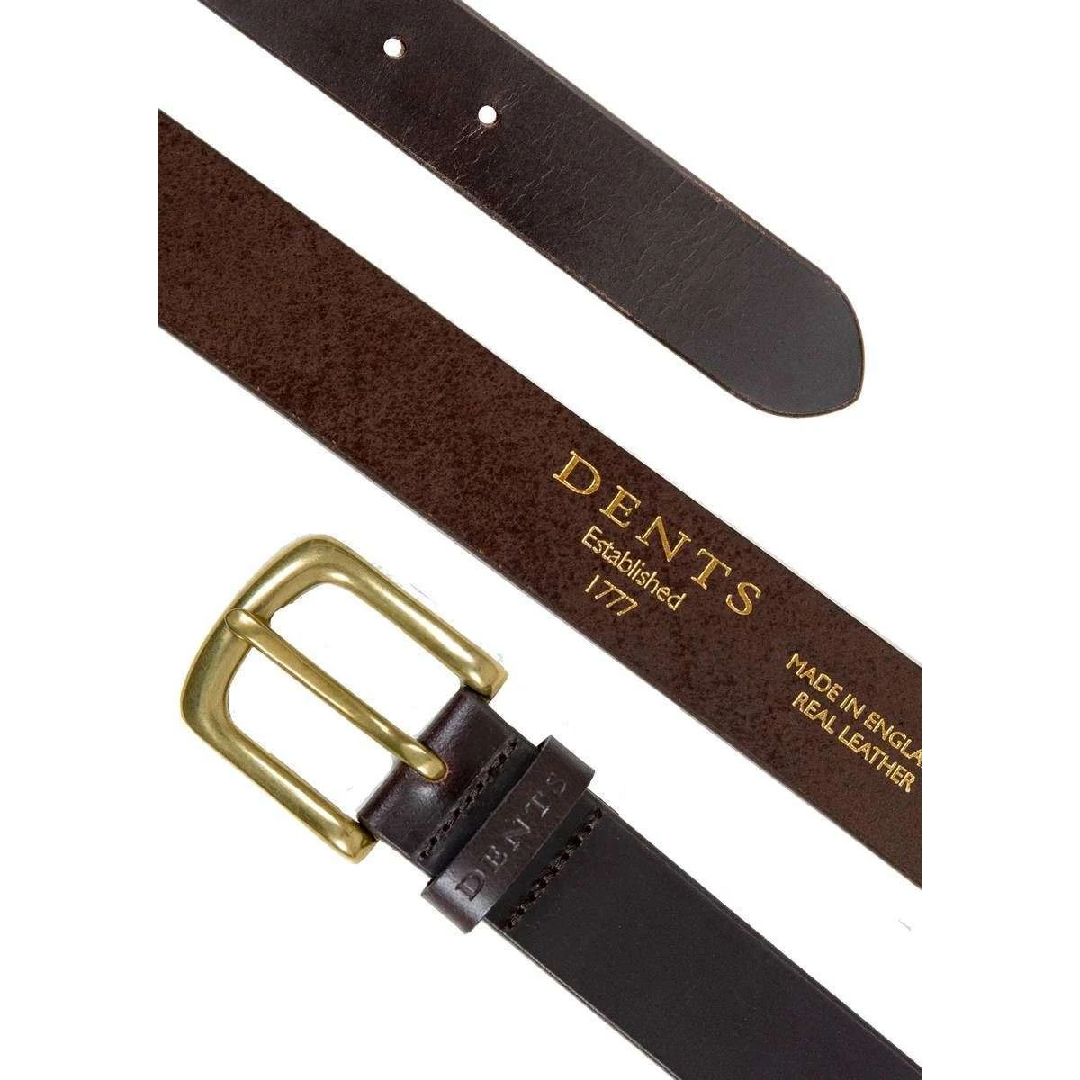 This men’s heritage smooth leather belt by the brand Dents is made from 100% full grain leather and is showcased in brown. It measures 3.5cm(width). Dents have made this heritage smooth leather belt in Britain. All the belts come complete with dents tags. The Dents Heritage Smooth Leather Belt – Brown is strikingly stunning. A perfect choice for any occasion with its thick, bold brass buckle which will make a statement with any outfit. This piece features a plain, straight edges with a gently pointed tip to offer simple style, just what you want from a trusty accessory. With six holes to allow for adjustment, this belt offers a comfortable fit wear upon wear making it essential for your collection.