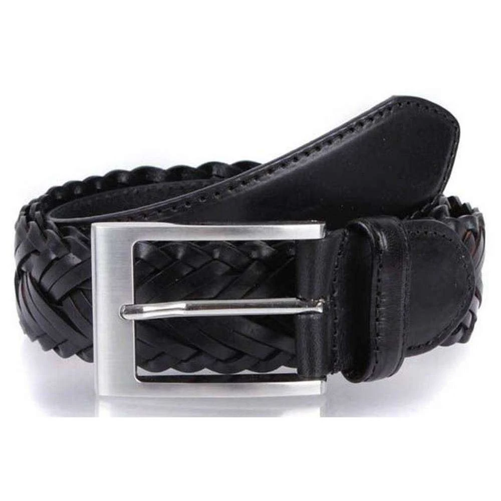 The Dents plaited leather belt is no doubt an impressive accessory. It has been expertly crafted from the very finest leather and features strips of black leather crossed over one another to create a plaited effect. The buckle is of brushed silver and features a single prong. The design of the belt makes it perfect for casual wear with jeans.