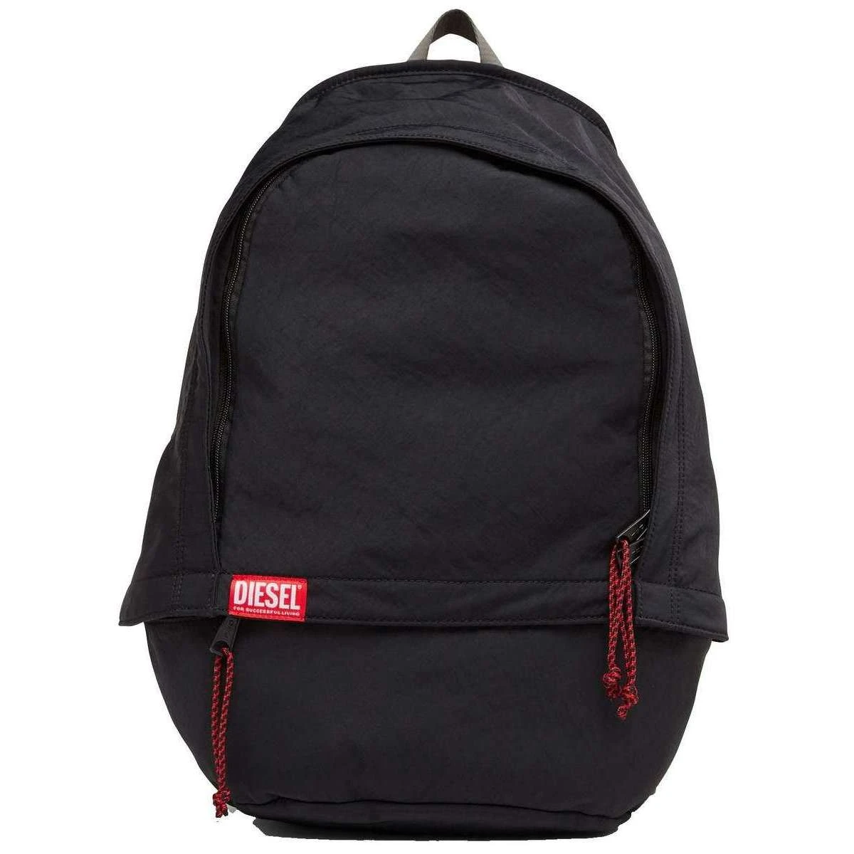 This unisex rave backpack by the brand Diesel is made from 70% polyamide-nylon and 30% polyester and is showcased in black. It measures 42cm(height) x 34cm(width) x 20cm(depth). All the bags come complete in diesel packaging. The Diesel Rave Backpack – Black will make a great accessory for any purpose, whether is be day to day travel, work or just a casual back while you run some errands. It features a padded mesh back panel which will offer that little extra comfort when carrying, zipped pockets and a laptop sleeve with a strap to secure it in place. Its main section is ideal for the over flow and had a two way zip closure as well as a top handle and shoulder straps which can be adjust for the best fit. Finished with vibrant Diesel branding at the front which co-ordinates with the outer zips this backpack is a stylish buy.