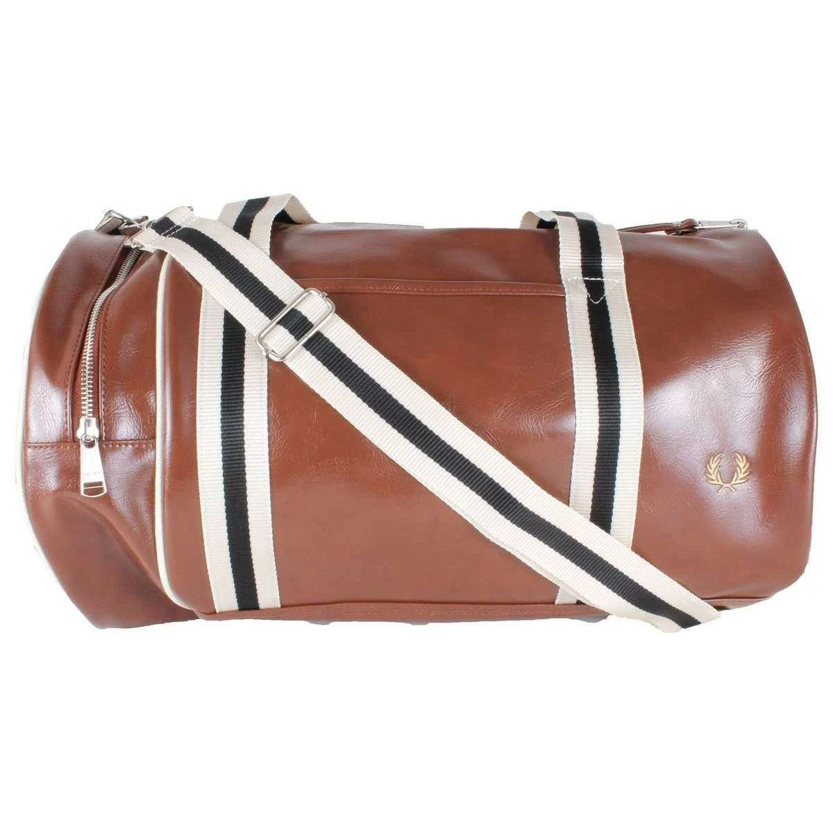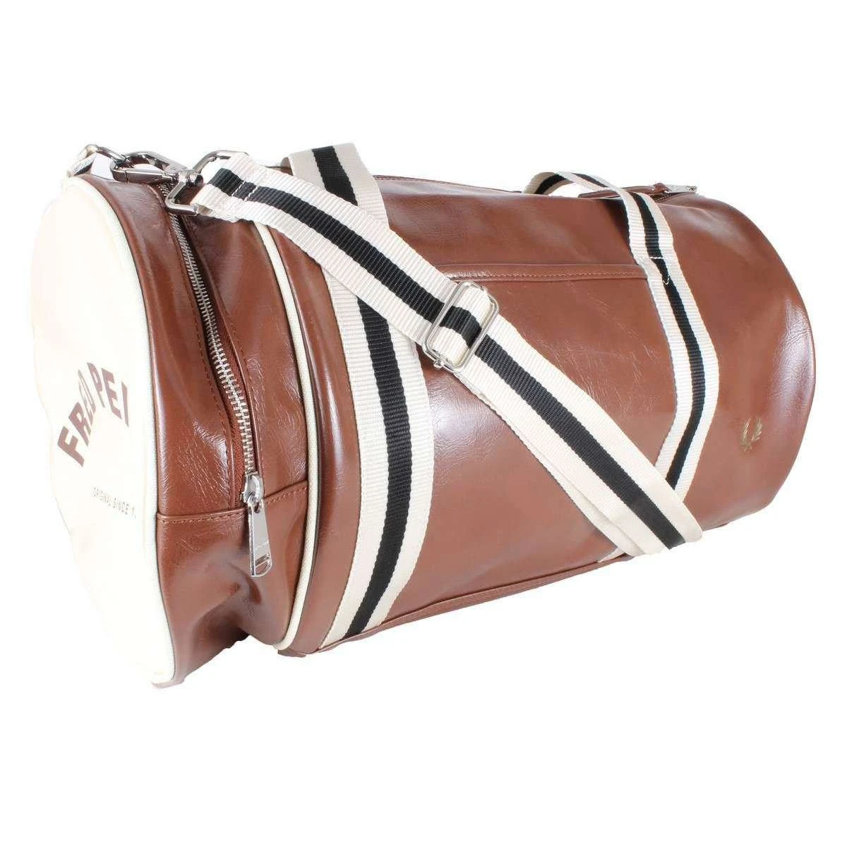 Brought to you by the brand Fred Perry, this tan/ecru men’s classic barrel bag is made from 100% polyurethane. It measures 26cm(height) x 46cm(width) x 26cm(depth). All the bags come complete with fred perry packaging. The Fred Perry Classic Barrel Bag – Tan/Ecru has an outer slip pocket, inner zip pocket and a zip compartment to store all of your valuables in. This bag also has an adjustable and removable shoulder strap and two strong holding handles to let you carry this in the most convenient way for you. This bag would be perfect for a weekend away to hold all of your items in.