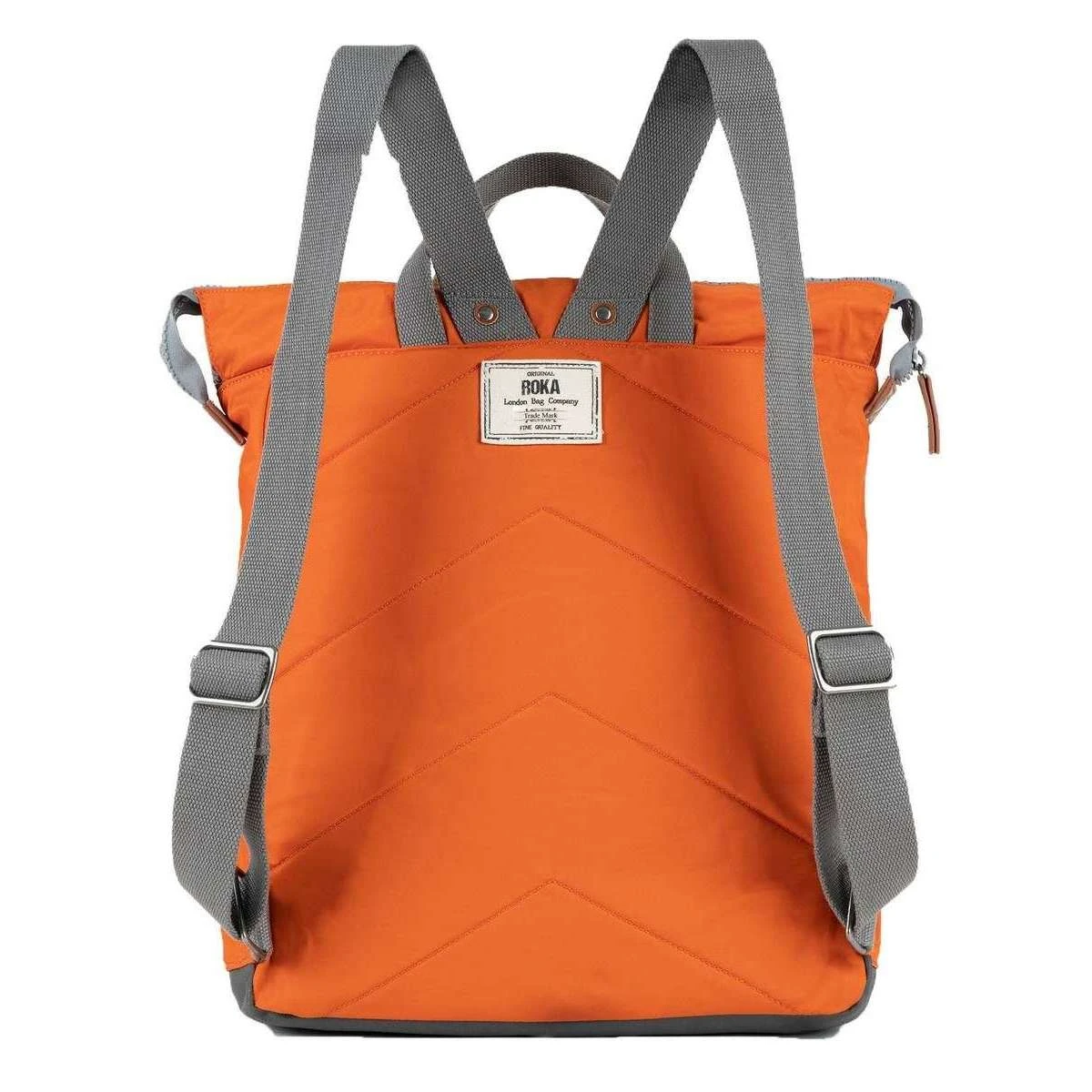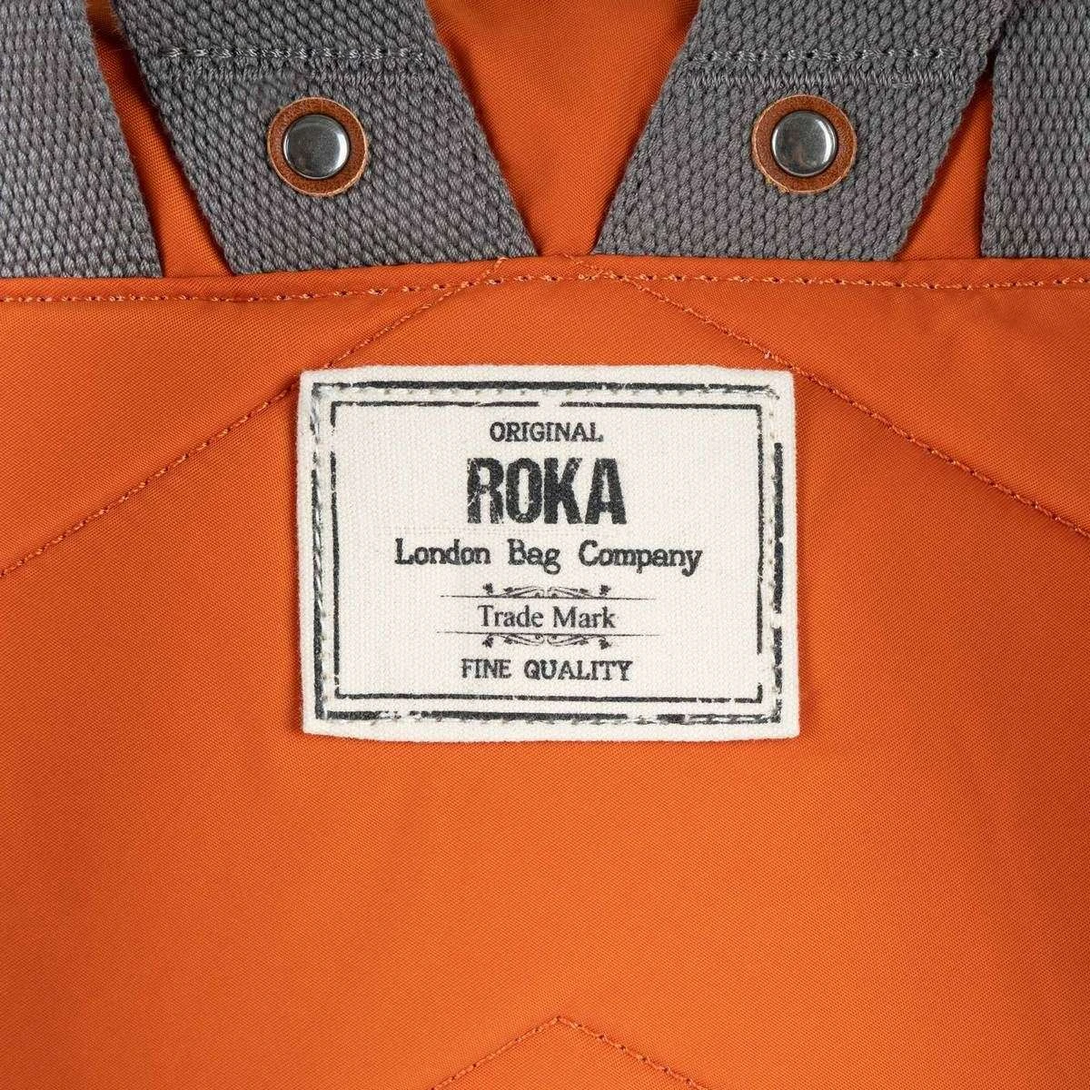 Introducing this unisex bantry b large sustainable nylon backpack by Roka, it is manufactured from 100% weather resistant recycled nylon (triple coated) in a burnt orange colour. It measures 44.5cm(height) x 32cm(width) x 15cm(depth). All the bags come complete with roka packaging. The Roka Bantry B Large Sustainable Nylon Backpack – Burnt Orange is the perfect weather resistant, lightweight backpack for your precious laptop or tablet. The padded compartment secures and protects your devices. The front zipped pocket holds commonly used items, while the small personal pocket secures smaller items. This original backpack features 4 straps for comfortable carrying on your back or by your side, and features a padded back for ensured back comfort. This durable and comfortable to carry pack is ready to take you on all types of activities. Twelve or more plastic bottles are used to make the rPet Materials used in the construction of this bag so you can be sure it is sustainable, environmentally friendly and completely vegan.