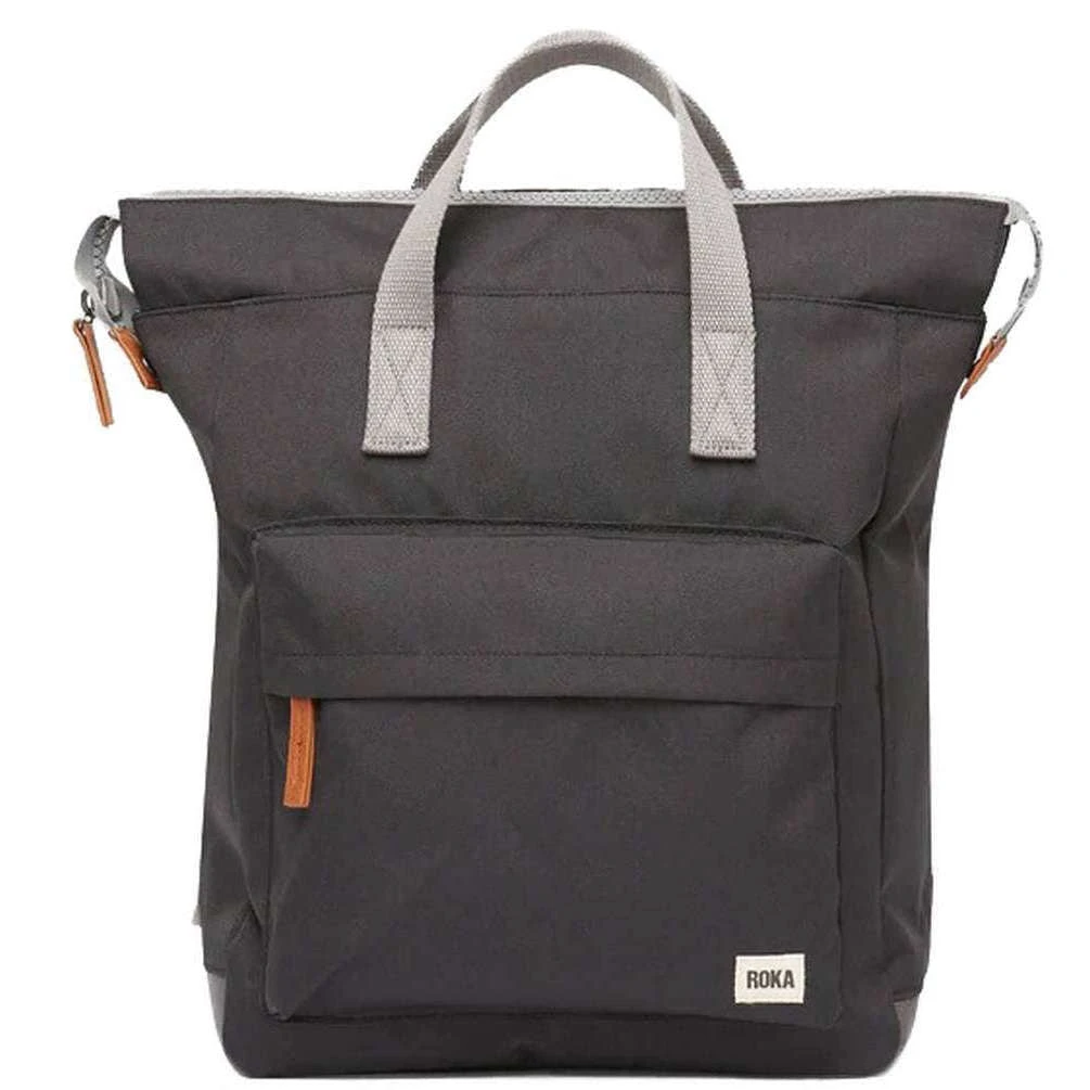 Manufactured from 100% weather resistant recycled canvas (triple coated) is this ash grey unisex bantry b medium sustainable canvas backpack by the designer Roka. It measures 40cm(height) x 30cm(width) x 12cm(depth). All the bags come complete with roka biodegradable packaging. The Roka Bantry B Medium Sustainable Canvas Backpack – Ash Grey has four straps for being carried on your back or by your side. This backpack is perfect for your daily needs as it features a zipped front pocket, secure inside pocket, and a padded pocket for your tablet/laptop. There is also extra room for your notebooks, water bottles and more, perfect for when on the go. Crafted from PET material that is used in plastic bottles which usually ends up in landfill or in the ocean, it has been recycled to give the material new life and protect oceans, it is then coated to make this water resistant. Vegan friendly, it is the ultimate choice of backpack.
