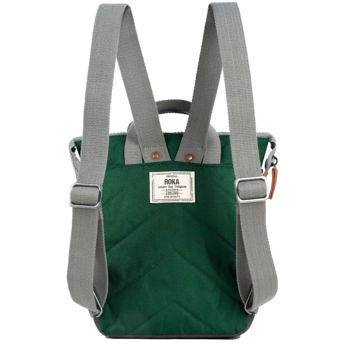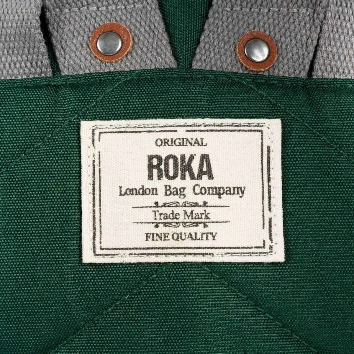 This unisex bantry b medium sustainable canvas backpack has been made from weather resistant recycled canvas (triple coated), featured in a green colour and is from the brand Roka. It measures 40cm(height) x 30cm(width) x 12cm(depth). All the bags come complete in roka packaging. The Roka Bantry B Medium Sustainable Canvas Backpack – Forest Green has four cotton straps for being carried on your back or by your side. This backpack is perfect for your daily needs as it features a zipped front pocket, secure inside pocket, and a padded pocket for your tablet/laptop. There is also extra room for your notebooks, water bottles and a padded section for your laptop, perfect for when on the go. Crafted from rPET material that is used in plastic bottles which usually ends up in landfill or in the ocean, it has been recycled to give the material new life and protect oceans, it is then coated to make it water resistant. Vegan friendly, it is the ultimate choice of backpack.