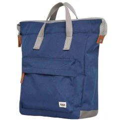 Manufactured from recycled polyethylene tetraphyte canvas and nylon is this mineral navy unisex bantry b medium sustainable canvas backpack by the designer Roka. It measures 40cm(height) x 35cm(width) x 12cm(depth). All the bags come complete with roka tags. The Roka Bantry B Medium Sustainable Canvas Backpack – Mineral Navy is ideal for staying on the move. This backpack has been manufactured from 12 to 15 recycled bottles making a difference in the world one step at a time. The inside has a padded compartment for your laptop or tablet, with enough room left for all your essentials and a small zipped pocket. Being weather resistant and durable, this would make the best new backpack for daily use. The zipped pocket to the front allows you easy access to your essential items and the cotton straps can be adjusted for comfortable carrying.
