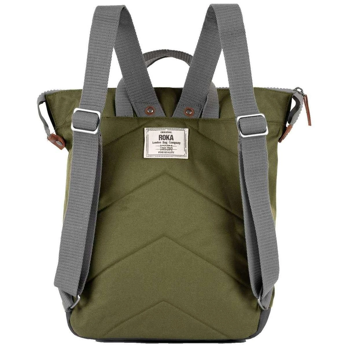 This unisex bantry b medium sustainable canvas backpack has been made from weather resistant recycled canvas (triple coated), featured in a green colour and is from the brand Roka. It measures 40cm(height) x 30cm(width) x 12cm(depth). All the bags come complete with roka packaging. The Roka Bantry B Medium Sustainable Canvas Backpack – Moss Green is perfect for keeping your essentials organised. This durable backpack features a large padded compartment with an internal laptop sleeve for ample storage space. The front pocket holds commonly used items, secured by a sturdy zip, while the inside pocket keeps your belongings secure. This original backpack is designed with 4 straps for comfortable carry on your back or by your side, and provides a padded back panel for comfort on the go. Crafted from PET material that is used in plastic bottles which usually ends up in landfill or in the ocean, it has been recycled to give the material new life and protect oceans, it is then coated to make this water resistant. Vegan friendly, it is the ultimate choice of backpack.