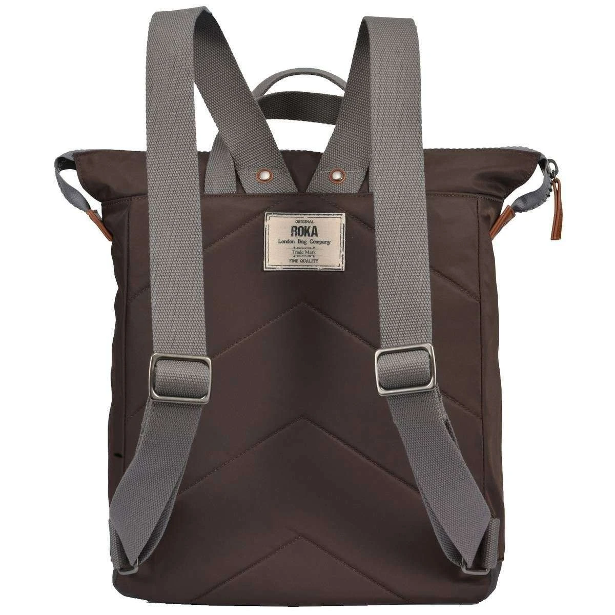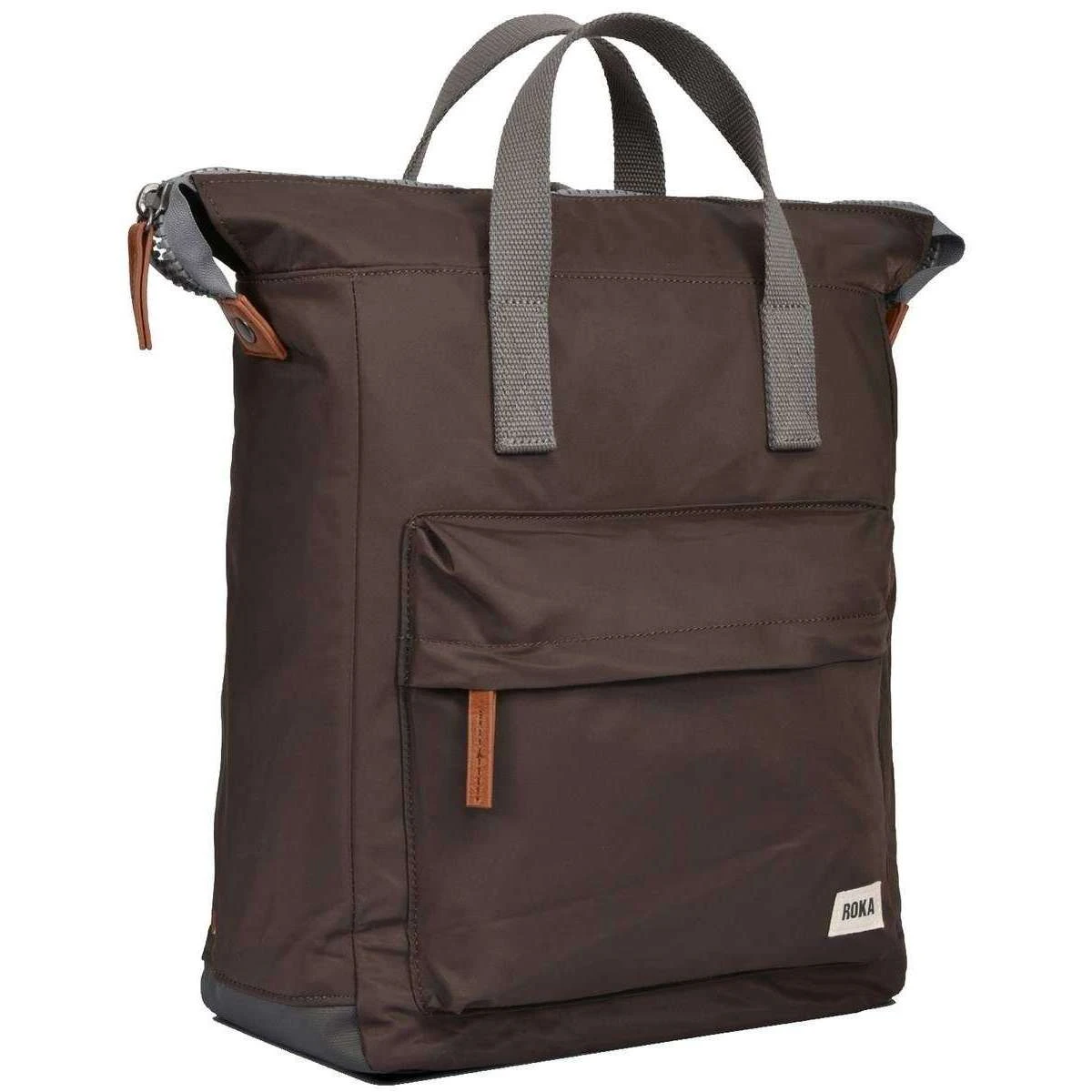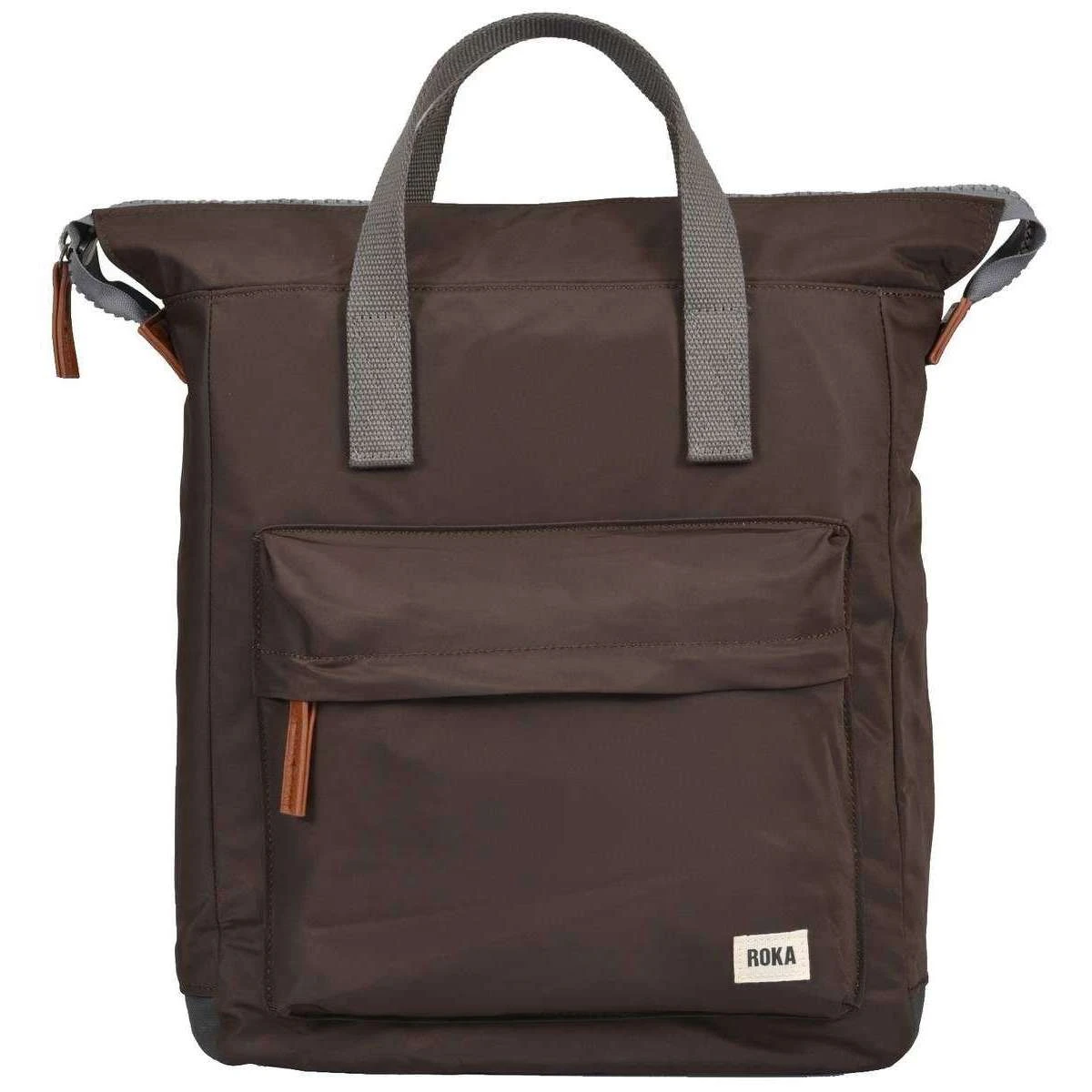 This bantry b medium sustainable nylon backpack for men or women is fashioned by the brand Roka in a brown colour and is made from 100% weather resistant recycled nylon (triple coated). It measures 40cm(height) x 30cm(width) x 12cm(depth). All the bags come complete in roka packaging. The Roka Bantry B Medium Sustainable Nylon Backpack – Dark Chocolate has four straps for being carried on your back or by your side. This backpack is perfect for your daily needs as it features a zipped front pocket, secure inside pocket, and a padded pocket for your tablet/laptop. There is also extra room for your notebooks, water bottles and more, perfect for when on the go. Crafted from rPET sustainable nylon that is used in plastic bottles which usually ends up in landfill or in the ocean, it has been recycled to give the material new life and protect oceans, it is also lightweight and smooth. Vegan friendly and water-resistant, it is the ultimate choice of backpack.