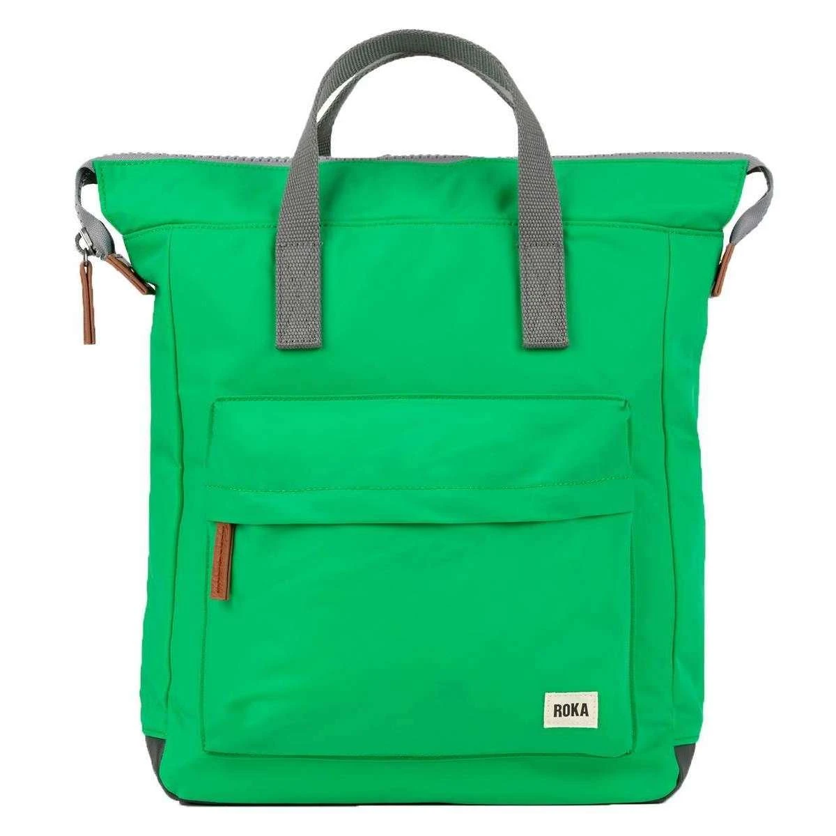 This unisex bantry b medium sustainable nylon backpack has been made from 100% weather resistant recycled nylon (triple coated), featured in a green colour and is from the brand Roka. It measures 40cm(height) x 30cm(width) x 12cm(depth). All the bags come complete with roka packaging. The Roka Bantry B Medium Sustainable Nylon Backpack – Green Apple has four straps for being carried on your back or by your side. This backpack is perfect for your daily needs as it features a zipped front pocket, secure inside pocket, and a padded pocket for your tablet/laptop. There is also extra room for your notebooks, water bottles and more, perfect for when on the go. Crafted from rPET sustainable nylon that is used in plastic bottles which usually ends up in landfill or in the ocean, it has been recycled to give the material new life and protect oceans, it is also lightweight and smooth. Vegan friendly and water-resistant, it is the ultimate choice of backpack.