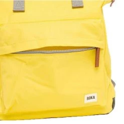 This well made unisex bantry b medium sustainable nylon backpack from Roka comes in a lemon yellow colour and is manufactured from recycled polyethylene terephthalate nylon. It measures 40cm(height) x 30cm(width) x 12cm(depth). All the bags come complete with roka biodegradable packaging. The Roka Bantry B Medium Sustainable Nylon Backpack – Lemon Yellow has four straps for being carried on your back or just holding by your side. This backpack is perfect for your day to day needs as it features a zipped front pocket, secure inside pocket, and a padded pocket for a tablet or laptop. There is also extra room for your notebooks, water bottles and more if needed, perfect for when on the go. This bag has been crafted from rPET sustainable nylon that is currently used in plastic bottles which usually ends up in landfill or in the ocean, it has been recycled to give the material a new lasting life and protects oceans, it is also lightweight and smooth. The bag is vegan friendly and water-resistant, it is the most ideal choice of backpack.
