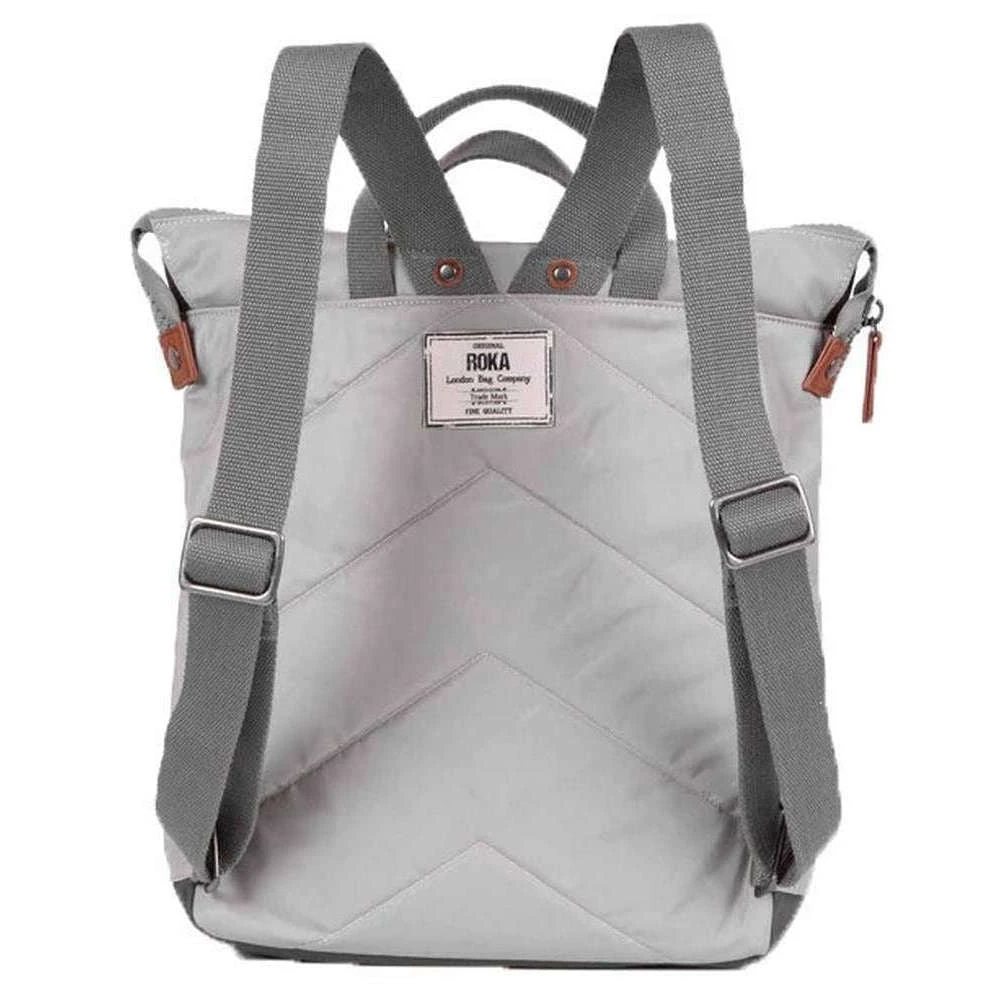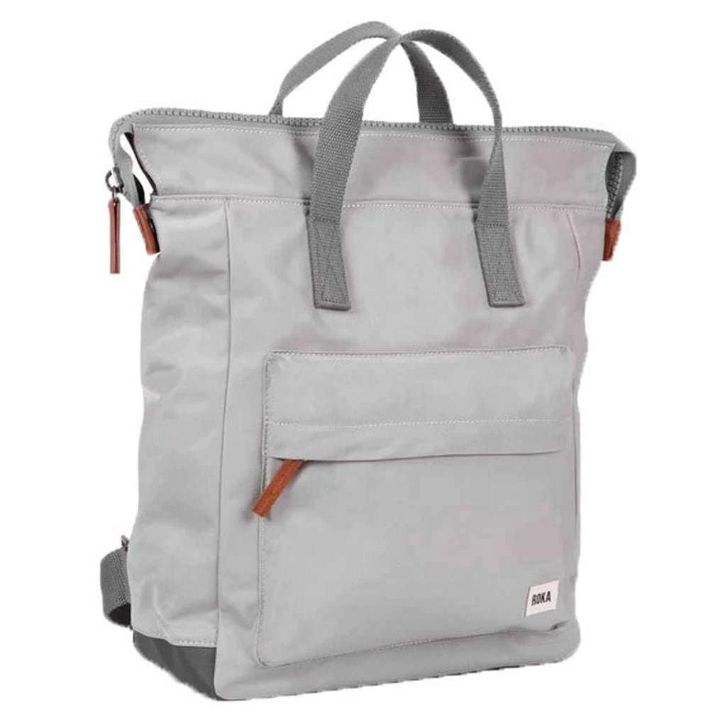 This unisex bantry b medium sustainable nylon backpack by the brand Roka is made from recycled polyethylene terephthalate nylon and is showcased in grey. It measures 40cm(height) x 30cm(width) x 12cm(depth). All the bags come complete with roka biodegradable packaging. The Roka Bantry B Medium Sustainable Nylon Backpack – Mist Grey has four straps for being carried on your back or just holding by your side. This backpack is perfect for your day to day needs as it features a zipped front pocket, secure inside pocket, and a padded pocket for a tablet or laptop. There is also extra room for your notebooks, water bottles and more if needed, perfect for when on the go. This bag has been crafted from rPET sustainable nylon that is currently used in plastic bottles which usually ends up in landfill or in the ocean, it has been recycled to give the material a new lasting life and protects oceans, it is also lightweight and smooth. The bag is vegan friendly and water-resistant, it is the most ideal choice of backpack.