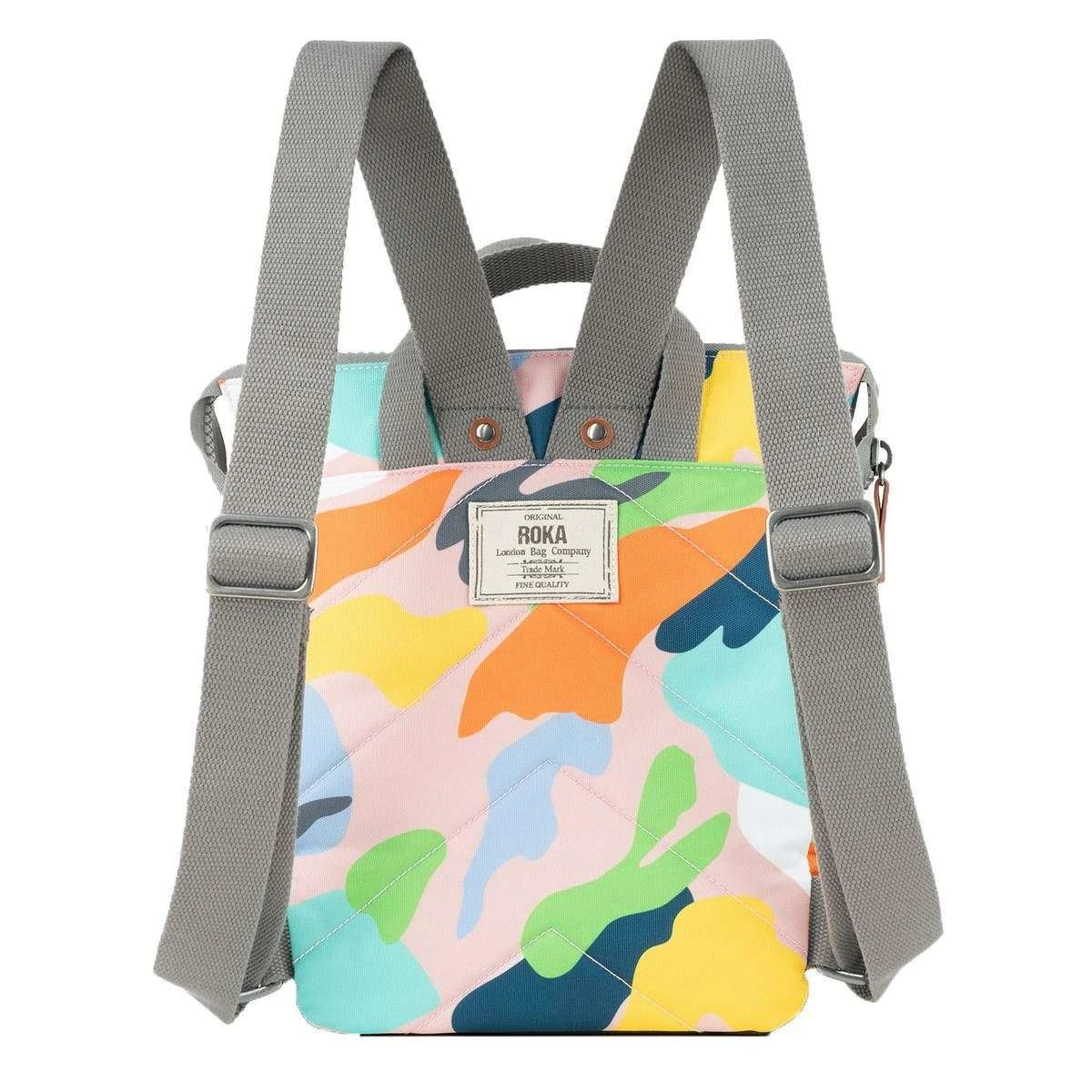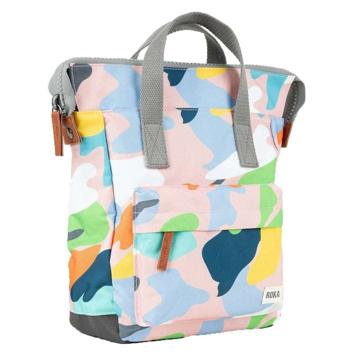 Introducing this unisex bantry b small mellow camo sustainable canvas backpack by Roka, it is manufactured from 100% weather resistant recycled canvas (triple coated) in a white/blue/orange colour. It measures 32cm(height) x 23cm(width) x 10cm(depth). All the bags come complete with roka packaging. The Roka Bantry B Small Mellow Camo Sustainable Canvas Backpack – White/Blue/Orange has 4 straps, 2 at the top and 2 at the back allowing it to be used as either a handheld bag or as a backpack. The Bantry B is perfect for your daily needs as it features a zipped front pocket, secure inside pocket, and a padded pocket for your tablet/laptop. Crafted from rPET material that is used in plastic bottles which usually ends up in landfill or in the ocean, it has been recycled to give the material new life and protect oceans, it is then coated to make this water resistant. Vegan friendly, it is the ultimate choice of backpack finished with a popping pattern.