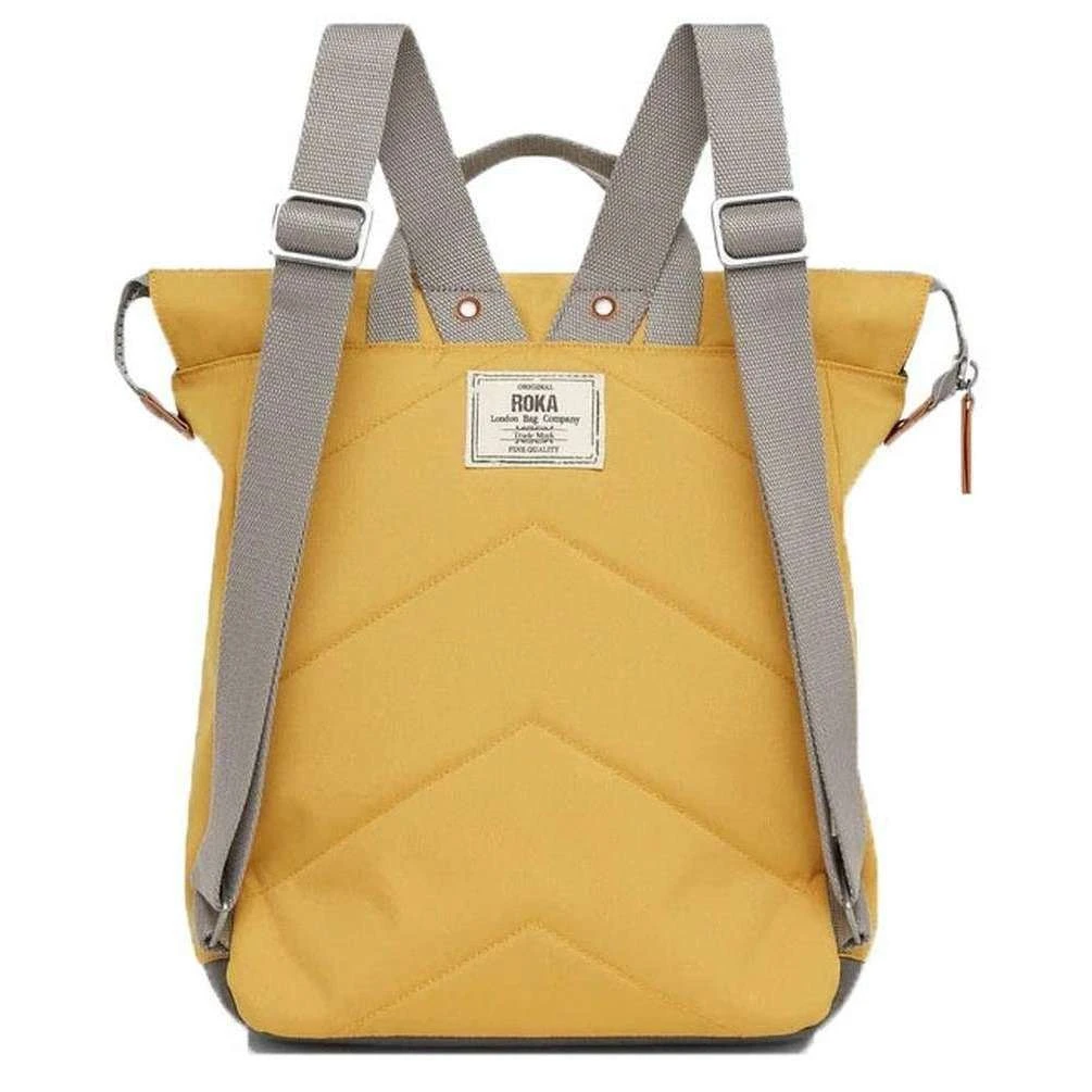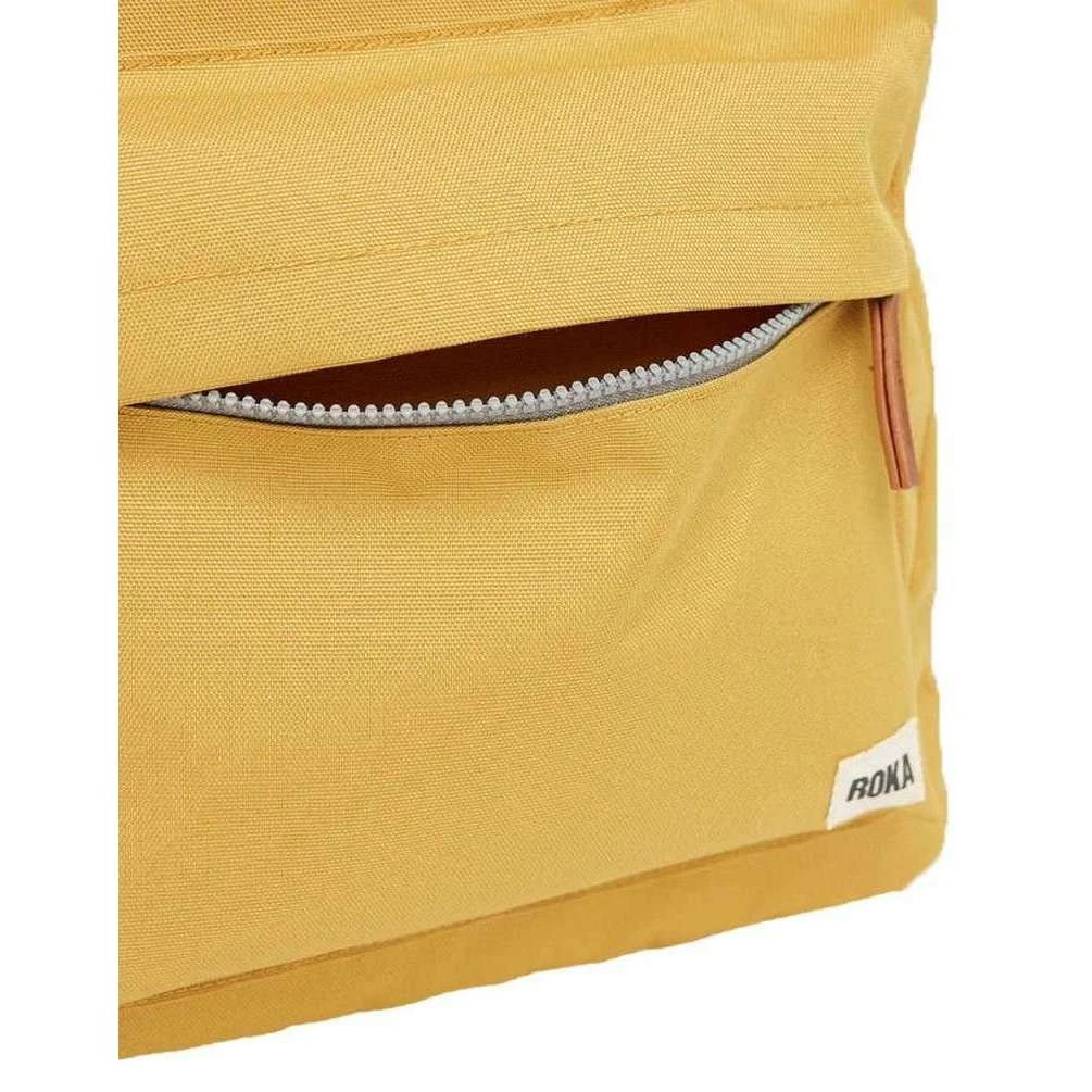 This men’s bantry b small sustainable canvas backpack by the brand Roka is made from 100% weather resistant recycled canvas (triple coated) and is showcased in yellow. It measures 32cm(height) x 23cm(width) x 10cm(depth). All the bags come complete with roka biodegradable packaging. The Roka Bantry B Small Sustainable Canvas Backpack – Flax Yellow has four straps for being carried on your back or by your side. This backpack is perfect for your daily needs as it features a zipped front pocket, secure inside pocket, and a padded pocket for your tablet/laptop. Crafted from rPET material that is used in plastic bottles which usually ends up in landfill or in the ocean, it has been recycled to give the material new life and protect oceans, it is then coated to make this water resistant. Vegan friendly, it is the ultimate choice of backpack.