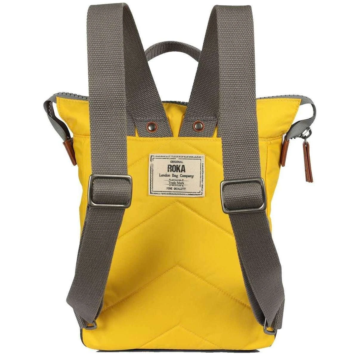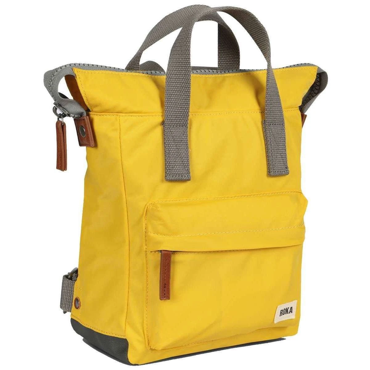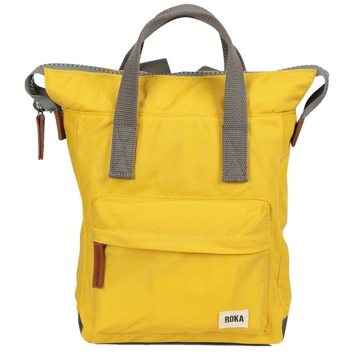 This unisex bantry b small sustainable nylon backpack by the brand Roka is made from 100% weather resistant recycled nylon (triple coated) and is showcased in yellow. It measures 32cm(height) x 23cm(width) x 10cm(depth). All the bags come complete in roka packaging. The Roka Bantry B Small Sustainable Nylon Backpack – Aspen Yellow has four straps for being carried on your back or by your side. This backpack is perfect for your daily needs as it features a zipped front pocket, secure inside pocket, and a padded pocket for your small tablet/laptop. Crafted from rPET sustainable nylon that is used in plastic bottles which usually ends up in landfill or in the ocean, it has been recycled to give the material new life and protect oceans, it is also lightweight and smooth. Vegan friendly and water-resitant, it is the ultimate choice of backpack.