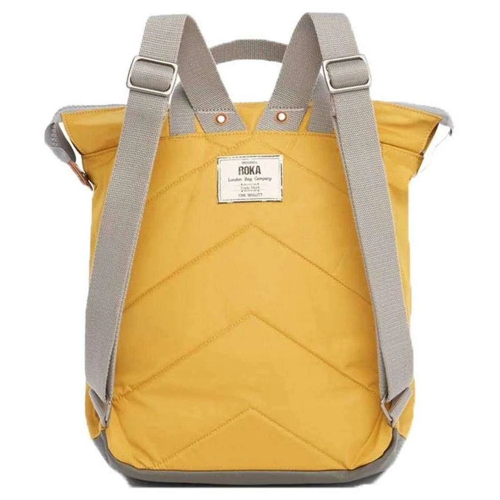 This unisex bantry b small sustainable nylon backpack has been made from 100% weather resistant recycled nylon (triple coated), featured in a yellow colour and is from the brand Roka. It measures 32cm(height) x 23cm(width) x 10cm(depth). All the bags come complete with roka biodegradable packaging. The Roka Bantry B Small Sustainable Nylon Backpack – Corn Yellow has four straps for being carried on your back or by your side. This backpack is perfect for your daily needs as it features a zipped front pocket, secure inside pocket, and a padded pocket for your tablet/laptop. Crafted from rPET sustainable nylon that is used in plastic bottles which usually ends up in landfill or in the ocean, it has been recycled to give the material new life and protect oceans, it is also lightweight and smooth. Vegan friendly and water-resitant, it is the ultimate choice of backpack.