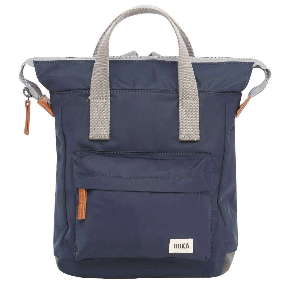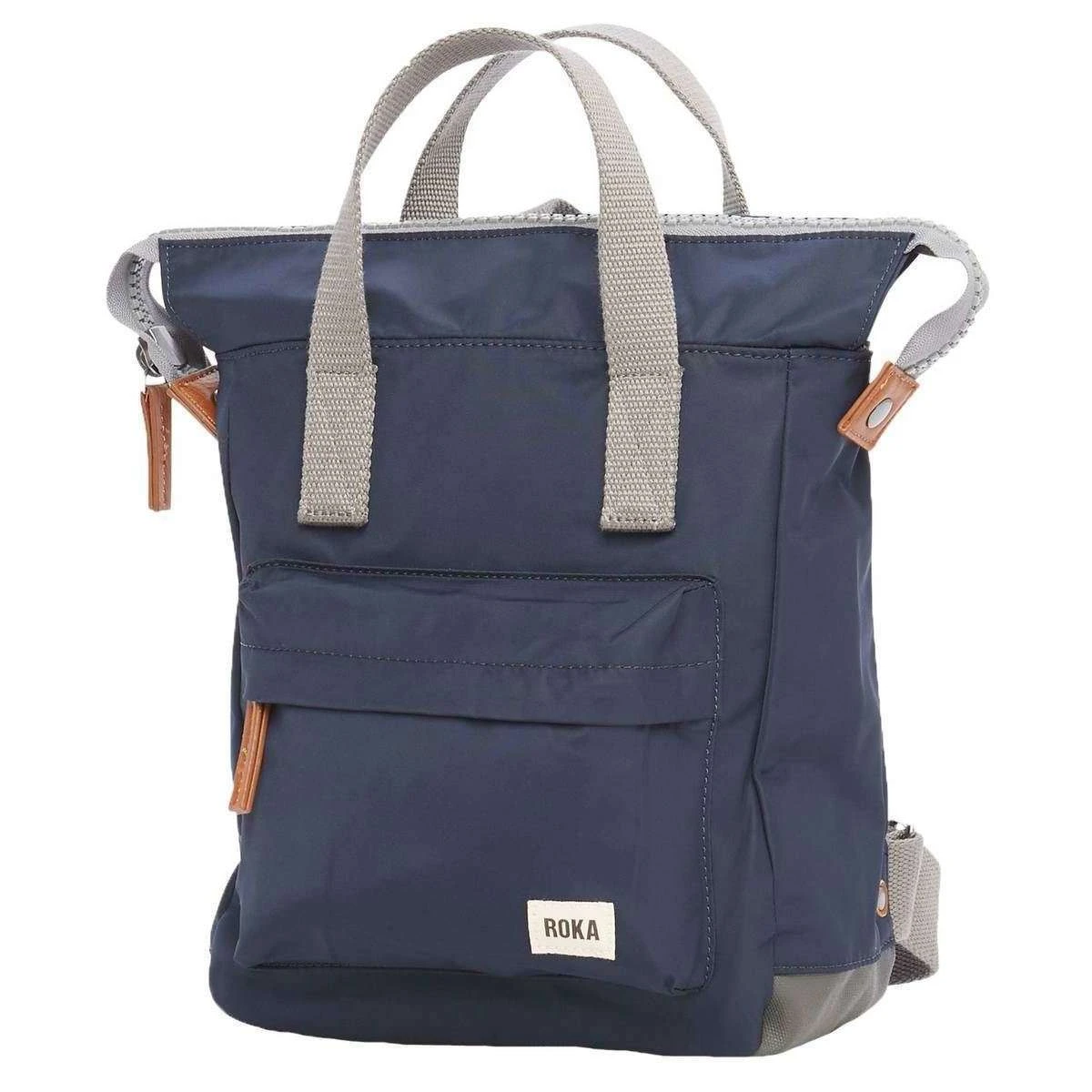 This unisex bantry b small sustainable nylon backpack by the brand Roka is made from recycled polyethylene tetraphyte nylon and is showcased in navy. It measures 32cm(height) x 26cm(width) x 10cm(depth). All the bags come complete with roka tags. The Roka Bantry B Small Sustainable Nylon Backpack – Midnight Navy will keep all of your items organised in one place. This bag has been crafted with a front zip and inside zip pocket to hold your phone, keys and wallet and inside slip padded pocket to keep your more precious items safe. This trendy design can be taken around in two different ways with its adjustable straps and carry handle, making this the most ideal new everyday backpack. Made from recycled materials it is sustainable helping to keep the world green.