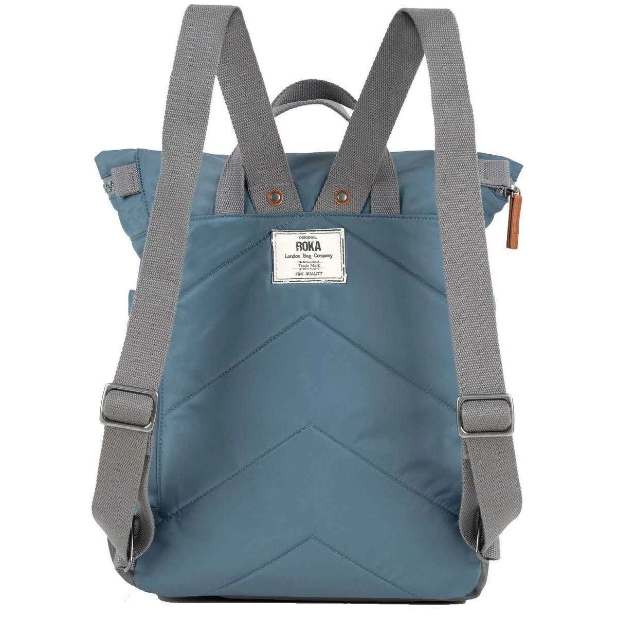 This unisex bayswater b medium sustainable nylon backpack has been made from 100% weather resistant recycled nylon (triple coated), featured in a blue colour and is from the brand Roka. It measures 42cm(height) x 30cm(width) x 12cm(depth). All the bags come complete in roka packaging. The Roka Bayswater B Medium Sustainable Nylon Backpack – Airforce Blue will make the perfect companion of your day-to-day adventures. Whether it be those weekend country walks or carrying your work essentials, the Bayswater is a phenomenal bag that offers great storage for all of your belongings. Open it up to find space for a 15” laptop, water bottle pockets, zipped internal compartment and an extremely practical umbrella pocket at the base which is 100% waterproof so when out in the wet weather you can slide your umbrella underneath without worrying that it will soak your essentials. Its roll top design offers extra room if needed and its back straps are adjustable. The Bayswater is completely vegan thanks to its sustainable materials which keeps the environment healthy.