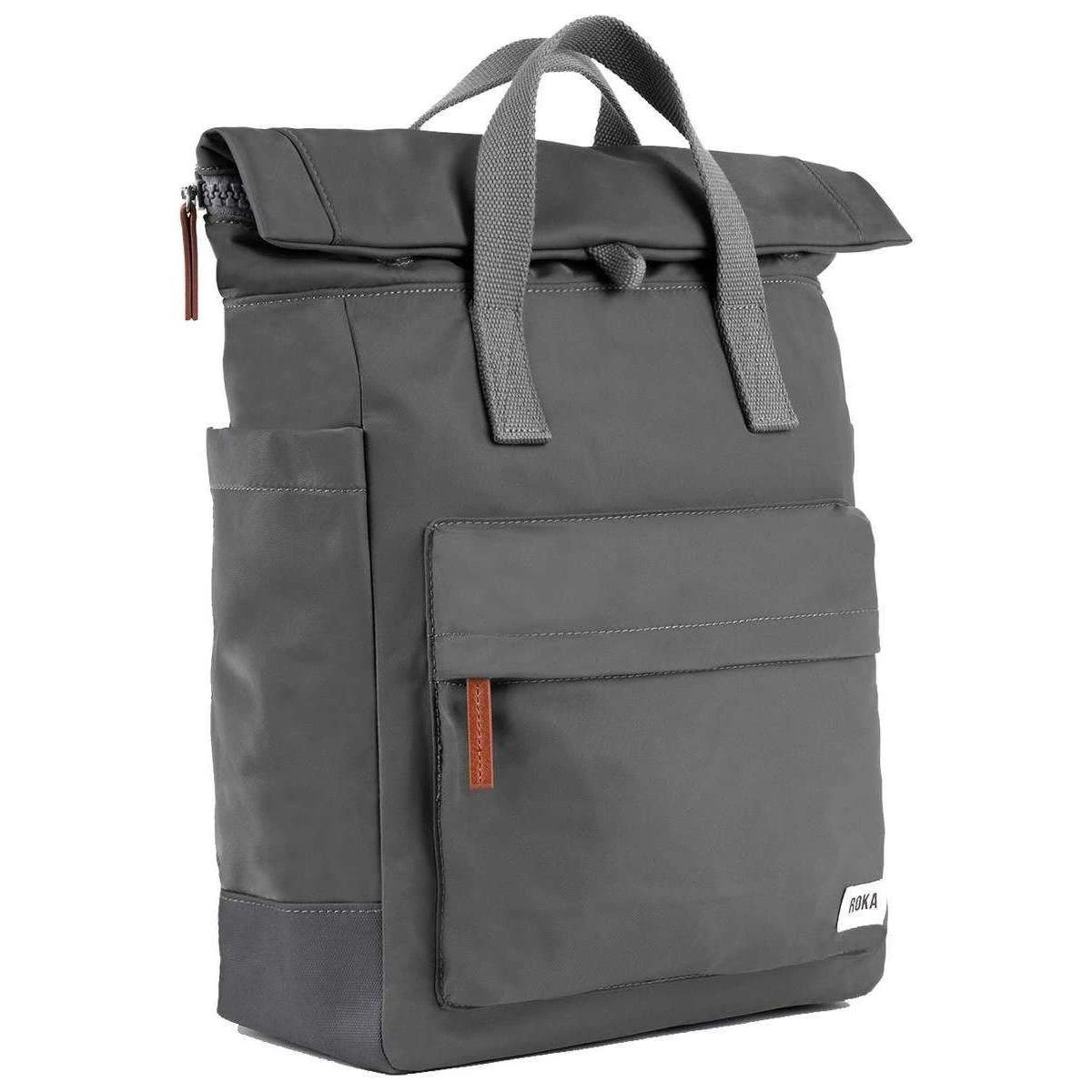Using grey 100% weather resistant recycled nylon (triple coated), this bayswater b medium sustainable nylon backpack by Roka is perfect for men or women and a must have. It measures 42cm(height) x 30cm(width) x 12cm(depth). All the bags come complete in roka packaging. The Roka Bayswater B Medium Sustainable Nylon Backpack – Graphite Grey will make the perfect companion of your day-to-day adventures. Whether it be those weekend country walks or carrying your work essentials, the Bayswater is a phenomenal bag that offers great storage for all of your belongings. Open it up to find space for a 15” laptop, water bottle pockets, zipped internal compartment and an extremely practical umbrella pocket at the base which is 100% waterproof so when out in the wet weather you can slide your umbrella underneath without worrying that it will soak your essentials. Its roll top design offers extra room if needed and its back straps are adjustable. The Bayswater is completely vegan thanks to its sustainable materials which keeps the environment healthy.