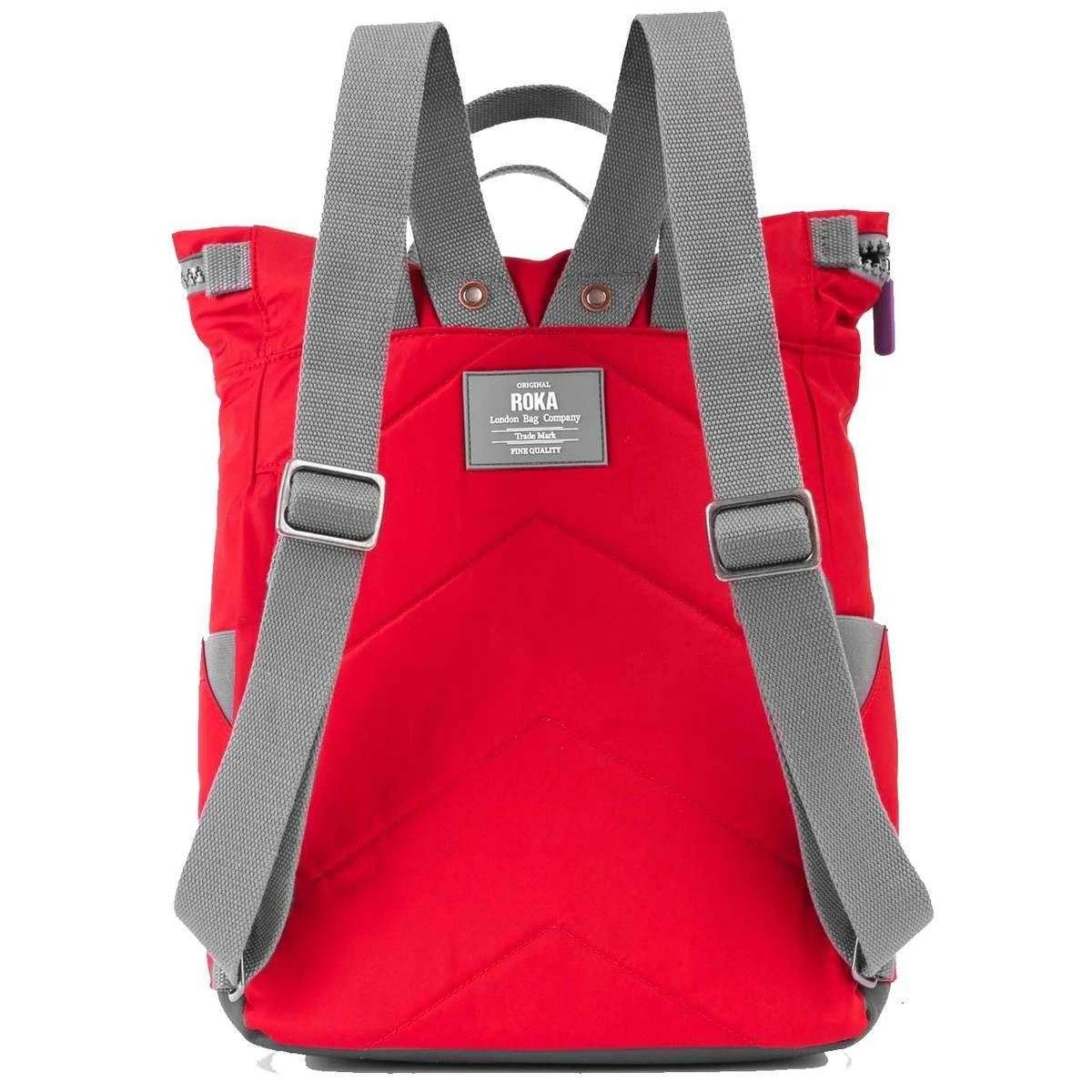This camden a medium sustainable nylon backpack for men or women is fashioned by the brand Roka in a red colour and is made from 100% weather resistant recycled nylon (triple coated). It measures 44cm(height) x 30cm(width) x 13cm(depth). All the bags come complete in roka packaging. The Roka Camden A Medium Sustainable Nylon Backpack – Negroni Red features all the beloved elements of the classic Roka bags but with an upgrade. This premium design offers a two-toned finish, giving the design that little extra flair while also keeping the popular sleek overall look. Expecting nothing less, the Camden is sustainable and made from rPET materials which are crafted using twelve or more plastic bottles, meaning that’s twelve more bottles that don’t end up in our landfills or oceans. Offering plenty of room for your daily essentials spread across side pockets, zipped pockets and a very useful padded sleeve for a 15″ laptop, this little backpack can organise your belongings effortlessly making it an essential for your collection.