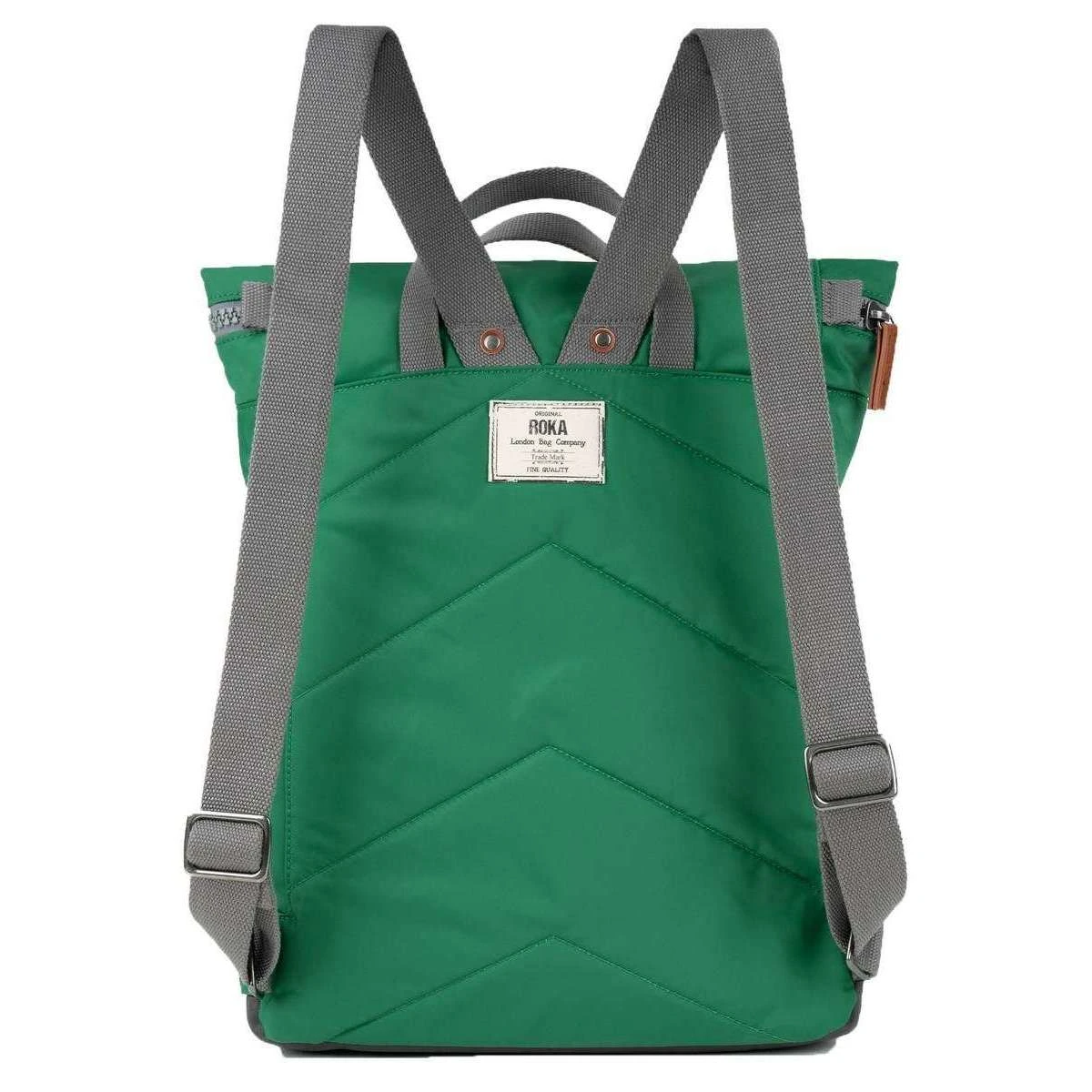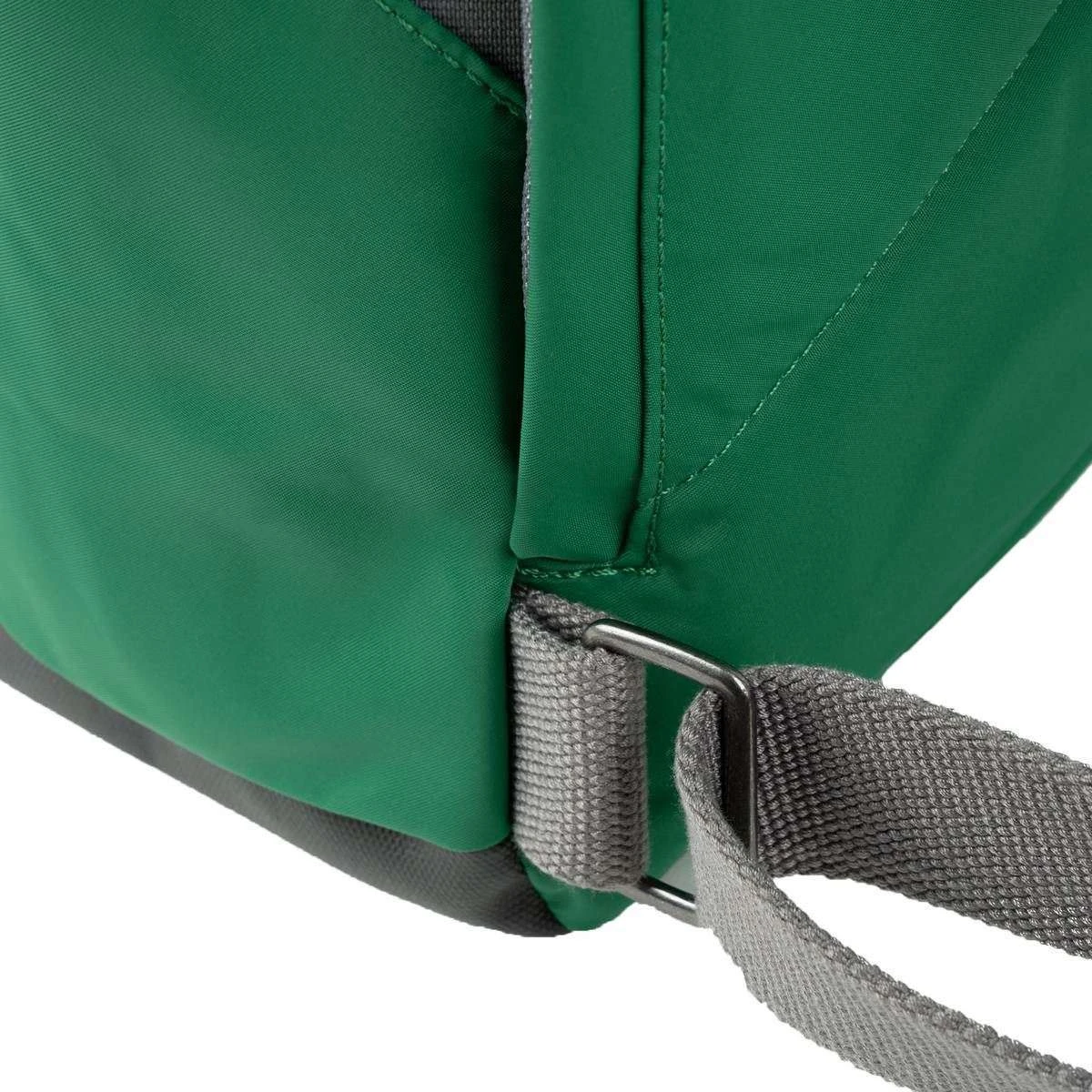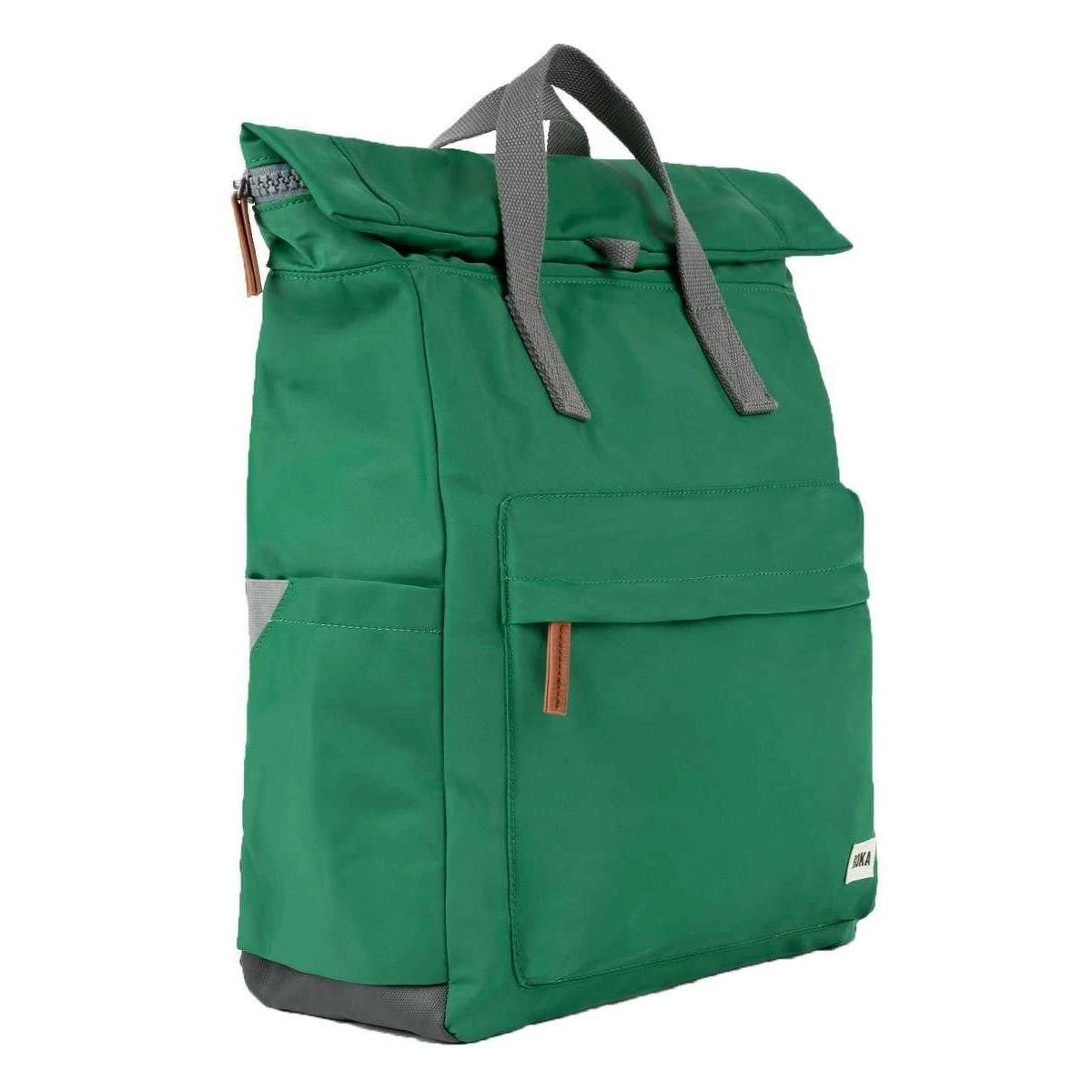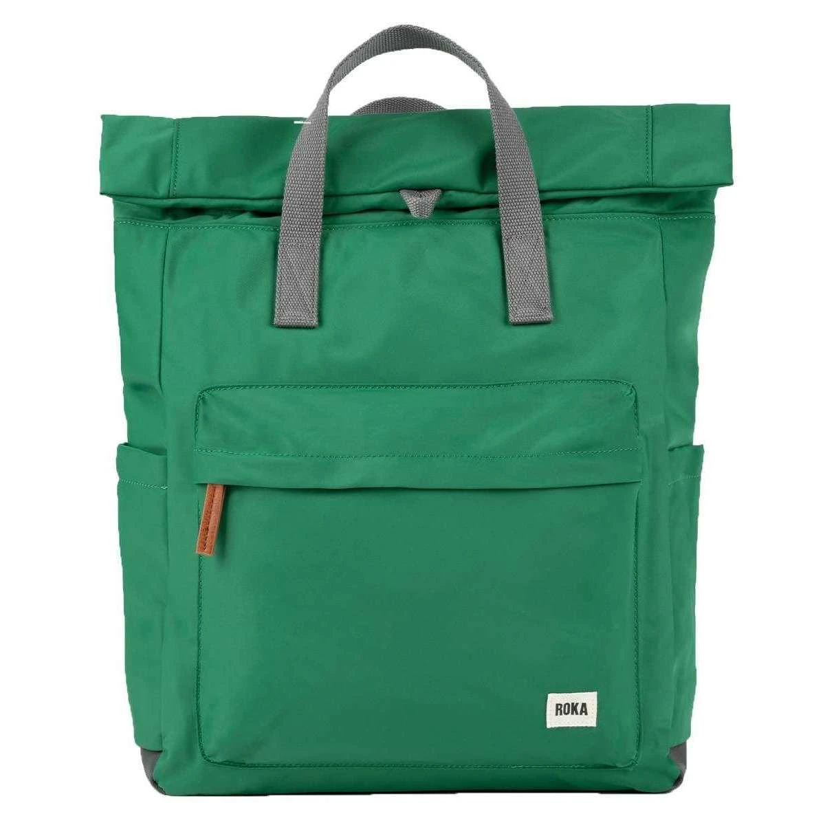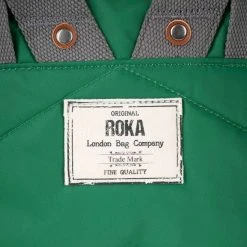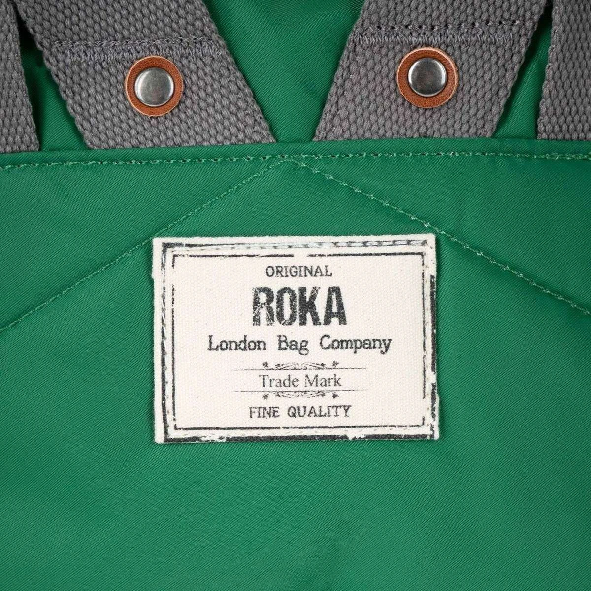 This well made unisex canfield b large sustainable nylon backpack from Roka comes in a emerald green colour and is manufactured from 100% weather resistant recycled nylon (triple coated). It measures 46cm(height) x 42.5cm(width) x 15cm(depth). All the bags come complete with roka packaging. The Roka Canfield B Large Sustainable Nylon Backpack – Emerald Green is aimed towards protecting the eco-system and wildlife by minimising waste. It is crafted with sustainable materials such as recycled plastic bottles, which makes it durable, vegan and water-resistant. The top of the Canfield B backpack rolls up, offering you extra storage and a large opening for easy access to contents. The opening is finished with a sturdy zip and a magnetic hold to keep your belongings secure in the bag. Opening up to a large main compartment, laptop compartment for devices up to 17″, ample space for all your belongings and side water bottle pockets, this backpack is truly perfect for those daily commutes.