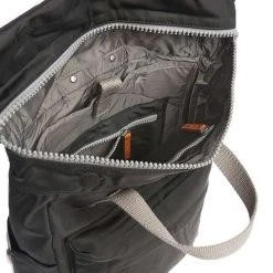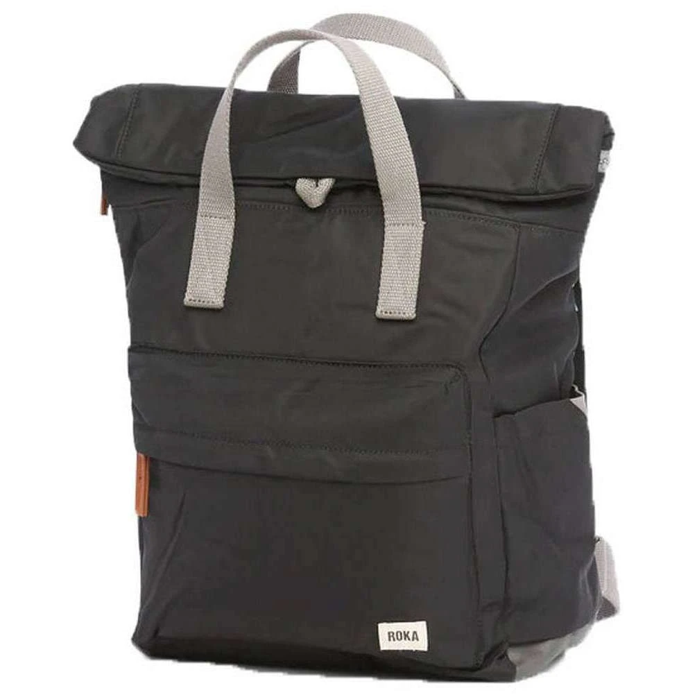 This canfield b medium sustainable nylon backpack for men or women is fashioned by the brand Roka in a black colour and is made from 100% weather resistant recycled nylon (triple coated). It measures 42cm(height) x 30cm(width) x 12cm(depth). All the bags come complete with roka packaging. The Roka Canfield B Medium Sustainable Nylon Backpack – Black is weather-resistant, durable, lightweight and sleek. Excellently crafted from recycled rPET materials, 12 or more plastic bottles are used to create this backpack making it environmentally friendly and sustainable. The roll top design enables the backpack to have a wide mouth opening which is secured with a sturdy zip and magnetic hold, carrying your essentials couldn’t be safer. Featuring a secret wallet pocket, a padded 15” laptop compartment, two side pockets perfect for water bottles, this backpack allows you to carry everything you may need on your day-to-day travels. Carry in complete comfort with the adjustable cotton webbing straps or the twin carry handles. This bag is completely vegan.