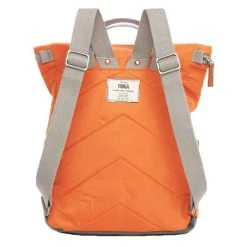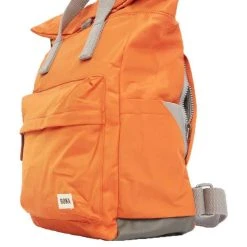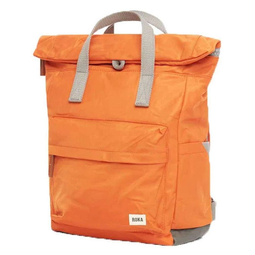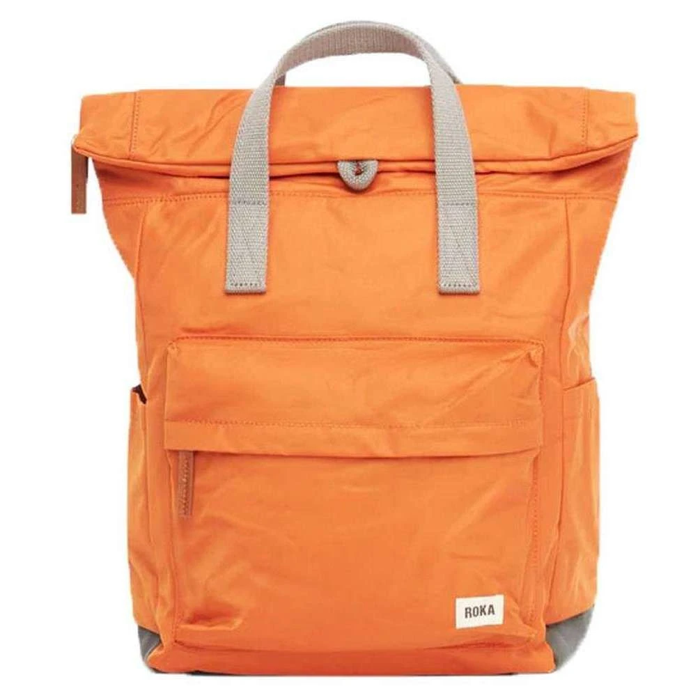 Introducing this unisex canfield b medium sustainable nylon backpack by Roka, it is manufactured from 100% weather resistant recycled nylon (triple coated) in a burnt orange colour. It measures 42cm(height) x 30cm(width) x 12cm(depth). All the bags come complete with roka packaging. The Roka Canfield B Medium Sustainable Nylon Backpack – Burnt Orange is weather-resistant, durable, lightweight and sleek. Excellently crafted from recycled rPET materials, 12 or more plastic bottles are used to create this backpack making it environmentally friendly and sustainable. The roll top design enables the backpack to have a wide mouth opening which is secured with a sturdy zip and magnetic hold, carrying your essentials couldn’t be safer. Featuring a secret wallet pocket, a padded 15” laptop compartment, two side pockets perfect for water bottles, this backpack allows you to carry everything you may need on your day-to-day travels. Carry in complete comfort with the adjustable cotton webbing straps or the twin carry handles. This bag is completely vegan.