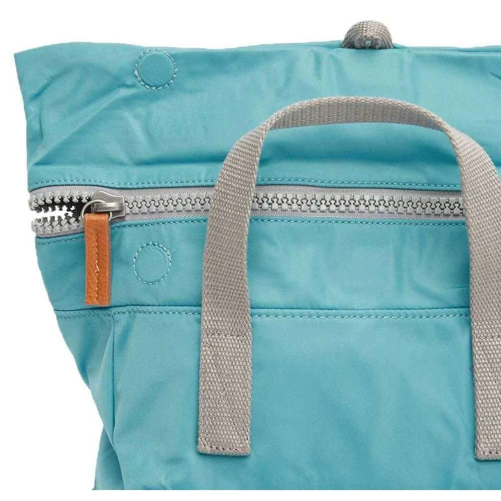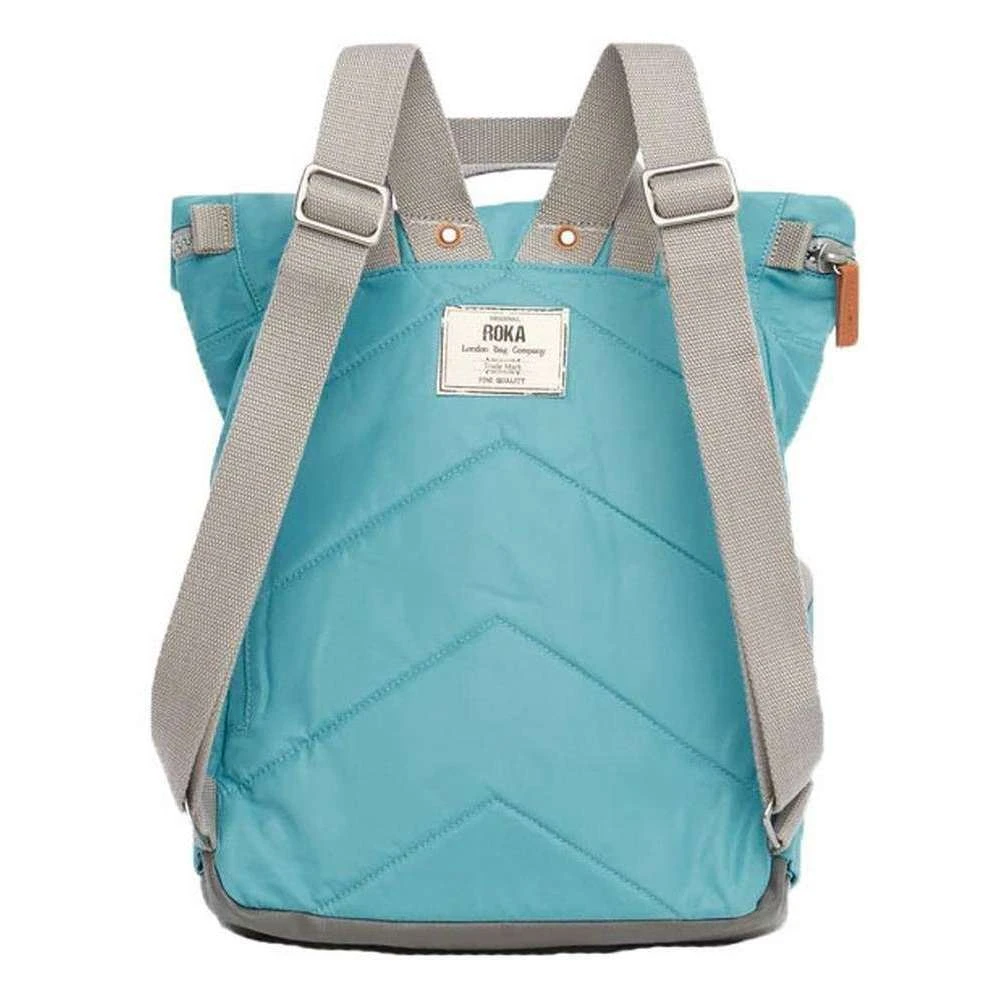 This canfield b medium sustainable nylon backpack for men or women is fashioned by the brand Roka in a blue colour and is made from 100% weather resistant recycled nylon (triple coated). It measures 42cm(height) x 30cm(width) x 12cm(depth). All the bags come complete with roka packaging. The Roka Canfield B Medium Sustainable Nylon Backpack – Petrol Blue is weather-resistant, durable, lightweight and sleek. Excellently crafted from recycled rPET materials, 12 or more plastic bottles are used to create this backpack making it environmentally friendly and sustainable. The roll top design enables the backpack to have a wide mouth opening which is secured with a sturdy zip and magnetic hold, carrying your essentials couldn’t be safer. Featuring a secret wallet pocket, a padded 15” laptop compartment, two side pockets perfect for water bottles, this backpack allows you to carry everything you may need on your day-to-day travels. Carry in complete comfort with the adjustable cotton webbing straps or the twin carry handles. This bag is completely vegan.