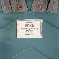 Brought to you by the brand Roka, this sage green unisex canfield b medium sustainable nylon backpack is made from 100% weather resistant recycled nylon (triple coated). It measures 42cm(height) x 30cm(width) x 12cm(depth). All the bags come complete with roka packaging. The Roka Canfield B Medium Sustainable Nylon Backpack – Sage Green is weather-resistant, durable, lightweight and sleek. Excellently crafted from recycled rPET materials, 12 or more plastic bottles are used to create this backpack making it environmentally friendly and sustainable. The roll top design enables the backpack to have a wide mouth opening which is secured with a sturdy zip and magnetic hold, carrying your essentials couldn’t be safer. Featuring a secret wallet pocket, a padded 15” laptop compartment, two side pockets perfect for water bottles, this backpack allows you to carry everything you may need on your day-to-day travels. Carry in complete comfort with the adjustable cotton webbing straps or the twin carry handles. This bag is completely vegan.