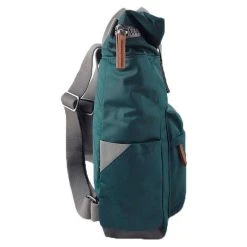 Manufactured from 100% weather resistant recycled nylon (triple coated) is this teal unisex canfield b medium sustainable nylon backpack by the designer Roka. It measures 42cm(height) x 30cm(width) x 12cm(depth). All the bags come complete with roka packaging. The Roka Canfield B Medium Sustainable Nylon Backpack – Teal is weather-resistant, durable, lightweight and sleek. Excellently crafted from recycled rPET materials, 12 or more plastic bottles are used to create this backpack making it environmentally friendly and sustainable. The roll top design enables the backpack to have a wide mouth opening which is secured with a sturdy zip and magnetic hold, carrying your essentials couldn’t be safer. Featuring a secret wallet pocket, a padded 15” laptop compartment, two side pockets perfect for water bottles, this backpack allows you to carry everything you may need on your day-to-day travels. Carry in complete comfort with the adjustable cotton webbing straps or the twin carry handles. This bag is completely vegan.