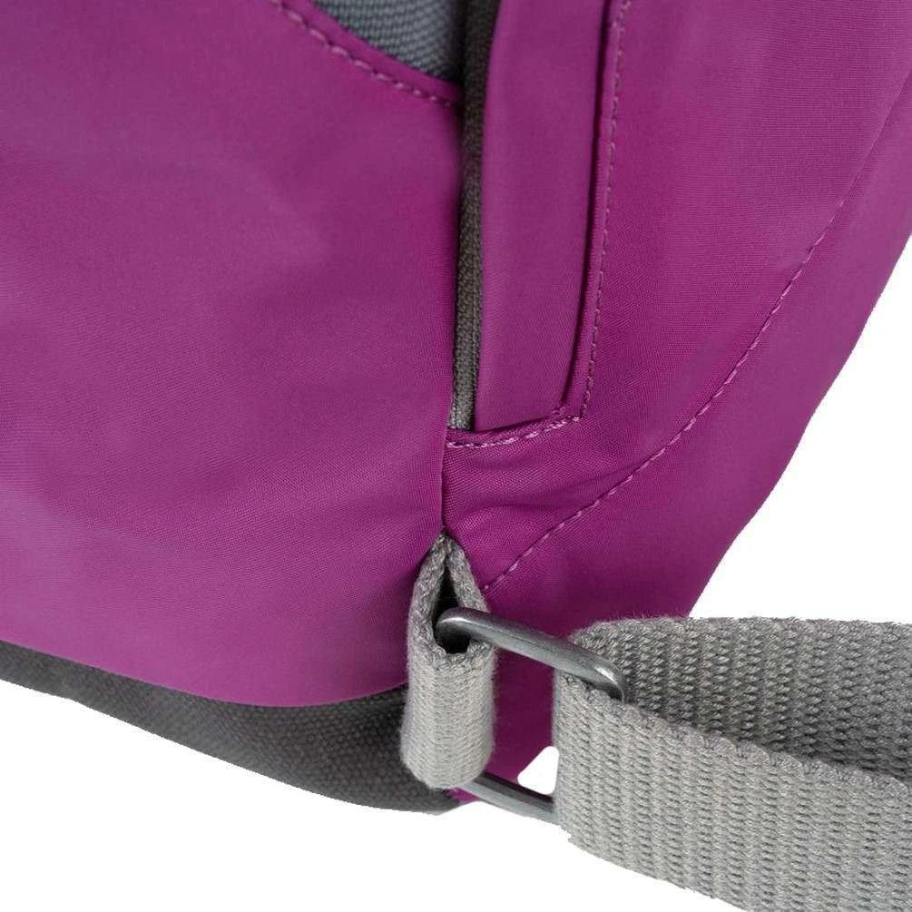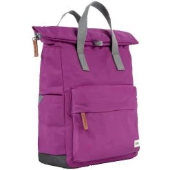This unisex canfield b medium sustainable nylon backpack has been made from 100% weather-resistant recycled nylon (triple coated), featured in a pink colour and is from the brand Roka. It measures 42cm(height) x 30cm(width) x 12cm(depth). All the bags come complete in roka packaging. The Roka Canfield B Medium Sustainable Nylon Backpack – Violet Pink is weather-resistant, durable, lightweight and sleek. Excellently crafted from recycled rPET materials, 12 or more plastic bottles are used to create this backpack making it environmentally friendly and sustainable. The roll top design enables the backpack to have a wide mouth opening which is secured with a sturdy zip and magnetic hold, carrying your essentials couldn’t be safer. Featuring a secret wallet pocket, a padded 15” laptop compartment, two side pockets perfect for water bottles, this backpack allows you to carry everything you may need on your day-to-day travels. Carry in complete comfort with the adjustable cotton webbing straps or the twin carry handles. This bag is completely vegan.