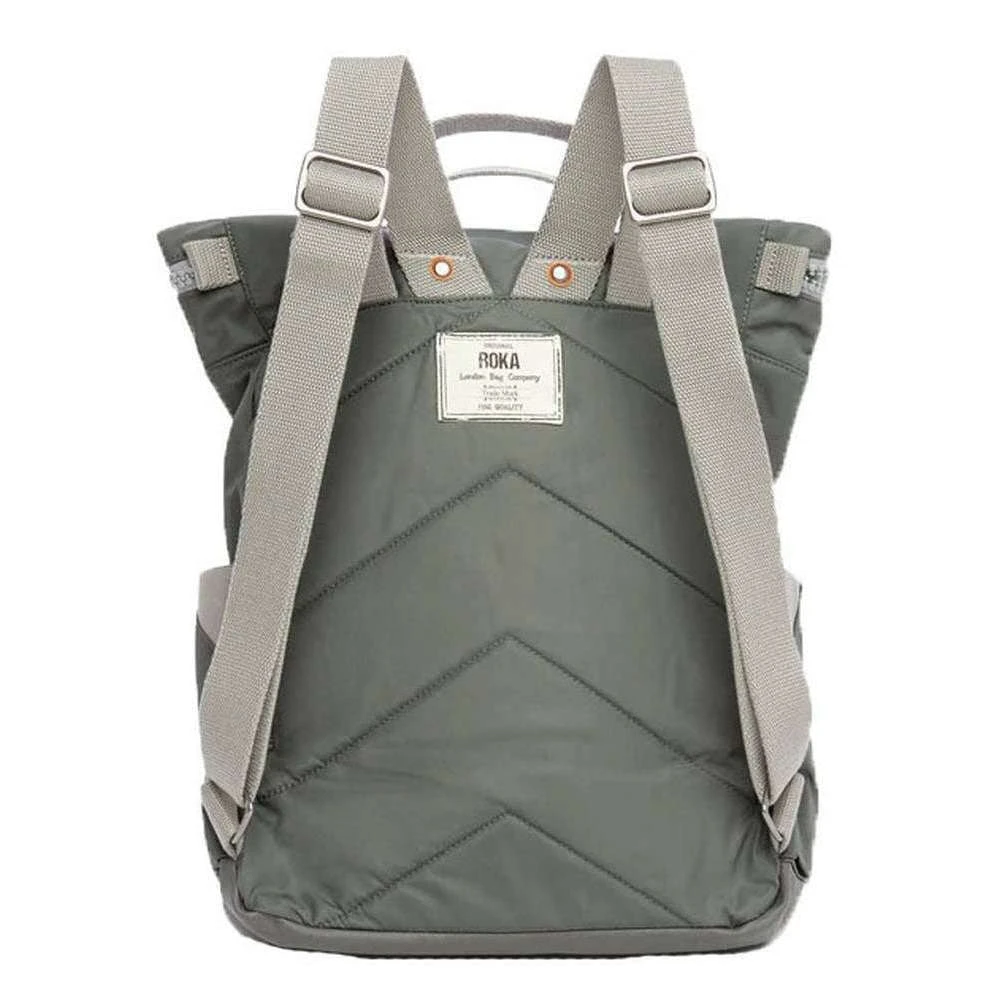 Brought to you by the brand Roka, this alloy grey unisex canfield b small sustainable nylon backpack is made from 100% weather resistant recycled nylon (triple coated). It measures 32cm(height) x 23.5cm(width) x 9.6cm(depth). All the bags come complete with roka biodegradable packaging. The Roka Canfield B Small Sustainable Nylon Backpack – Alloy Grey is weather-resistant, durable, lightweight and sleek. The roll top design enables the backpack to have a wide mouth opening which is secured with a sturdy zip and magnetic hold, carrying your essentials couldn’t be safer. Featuring a secret wallet pocket and a tablet section, this backpack allows you to carry everything you may need on your day-to-day travels. Carry in complete comfort with the adjustable cotton webbing straps or the twin carry handles. 12 or more plastic bottles are used to make the rPET material for this bag so it is environmentally friendly and also completely vegan.