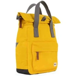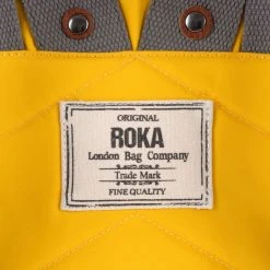 This unisex canfield b small sustainable nylon backpack by the brand Roka is made from 100% weather resistant recycled nylon (triple coated) and is showcased in yellow. It measures 32cm(height) x 23.5cm(width) x 9.6cm(depth). All the bags come complete in roka packaging. The Roka Canfield B Small Sustainable Nylon Backpack – Aspen Yellow is weather-resistant, durable, lightweight and sleek. The roll top design enables the backpack to have a wide mouth opening which is secured with a sturdy zip and magnetic hold, carrying your essentials couldn’t be safer. Featuring a secret wallet pocket and a tablet section, this backpack allows you to carry everything you may need on your day-to-day travels. Carry in complete comfort with the adjustable cotton webbing straps or the twin carry handles. 12 or more plastic bottles are used to make the rPET material for this bag so it is environmentally friendly and also completely vegan.