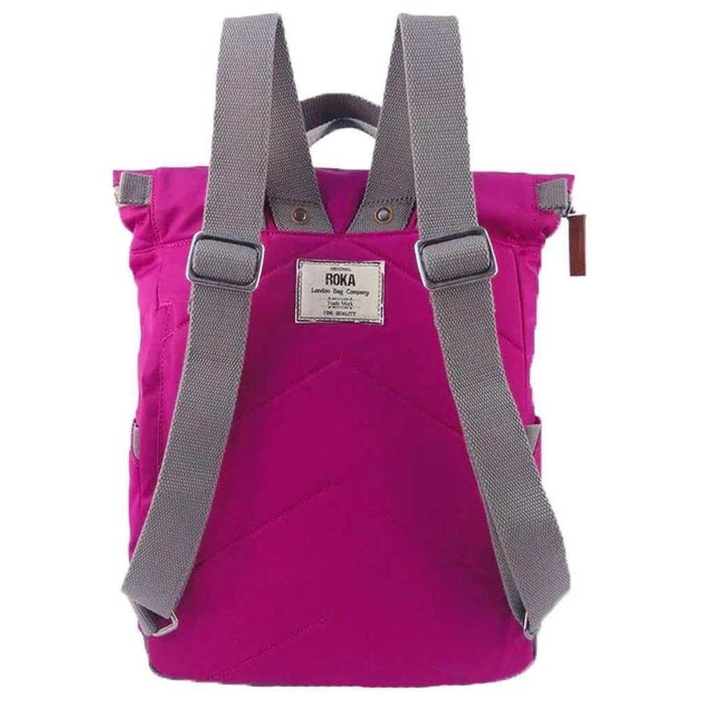 Perfect for men or women is this Roka candy pink canfield b small sustainable nylon backpack, it is also made from 100% weather resistant recycled nylon (triple coated). It measures 32cm(height) x 23.5cm(width) x 9.6cm(depth). All the bags come complete with roka biodegradable packaging. The Roka Canfield B Small Sustainable Nylon Backpack – Candy Pink is weather-resistant, durable, lightweight and sleek. The roll top design enables the backpack to have a wide mouth opening which is secured with a sturdy zip and magnetic hold, carrying your essentials couldn’t be safer. Featuring a secret wallet pocket and a tablet section, this backpack allows you to carry everything you may need on your day-to-day travels. Carry in complete comfort with the adjustable cotton webbing straps or the twin carry handles. 12 or more plastic bottles are used to make the rPET material for this bag so it is environmentally friendly and also completely vegan.