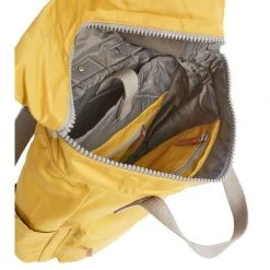 Manufactured from 100% weather resistant recycled nylon (triple coated) is this corn yellow unisex canfield b small sustainable nylon backpack by the designer Roka. It measures 32cm(height) x 23.5cm(width) x 9.6cm(depth). All the bags come complete with roka biodegradable packaging. The Roka Canfield B Small Sustainable Nylon Backpack – Corn Yellow is weather-resistant, durable, lightweight and sleek. The roll top design enables the backpack to have a wide mouth opening which is secured with a sturdy zip and magnetic hold, carrying your essentials couldn’t be safer. Featuring a secret wallet pocket and a tablet section, this backpack allows you to carry everything you may need on your day-to-day travels. Carry in complete comfort with the adjustable cotton webbing straps or the twin carry handles. 12 or more plastic bottles are used to make the rPET material for this bag so it is environmentally friendly and also completely vegan.
