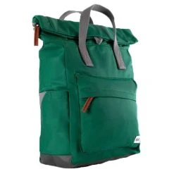 Designer Roka has brought you this unisex 100% weather resistant recycled nylon (triple coated) bag using emerald green tones. It measures 32cm(height) x 23.5cm(width) x 9.6cm(depth). All the bags come complete with roka biodegradable packaging. The Roka Canfield B Small Sustainable Nylon Backpack – Emerald Green is weather-resistant, durable, lightweight and sleek. The roll top design enables the backpack to have a wide mouth opening which is secured with a sturdy zip and magnetic hold, carrying your essentials couldn’t be safer. Featuring a secret wallet pocket and a tablet section, this backpack allows you to carry everything you may need on your day-to-day travels. Carry in complete comfort with the adjustable cotton webbing straps or the twin carry handles. 12 or more plastic bottles are used to make the rPET material for this bag so it is environmentally friendly and also completely vegan.