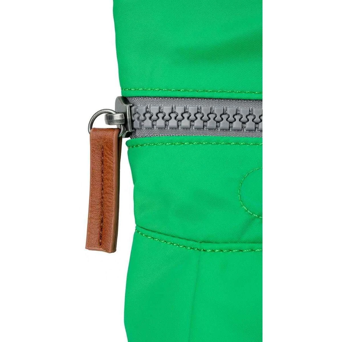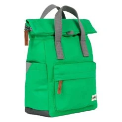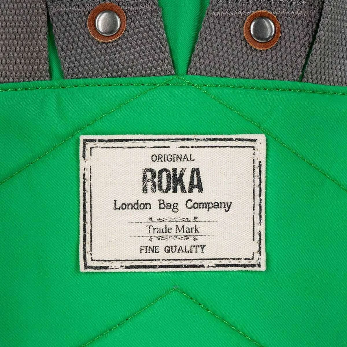 This unisex canfield b small sustainable nylon backpack has been made from 100% weather resistant recycled nylon (triple coated), featured in a green colour and is from the brand Roka. It measures 33cm(height) x 23.5cm(width) x 9.6cm(depth). All the bags come complete with roka packaging. The Roka Canfield B Small Sustainable Nylon Backpack – Green Apple is weather-resistant, durable, lightweight and sleek. The roll top design enables the backpack to have a wide mouth opening which is secured with a sturdy zip and magnetic hold, carrying your essentials couldn’t be safer. Featuring a secret wallet pocket and a tablet section, this backpack allows you to carry everything you may need on your day-to-day travels. Carry in complete comfort with the adjustable cotton webbing straps or the twin carry handles. 12 or more plastic bottles are used to make the rPET material for this bag so it is environmentally friendly and also completely vegan.