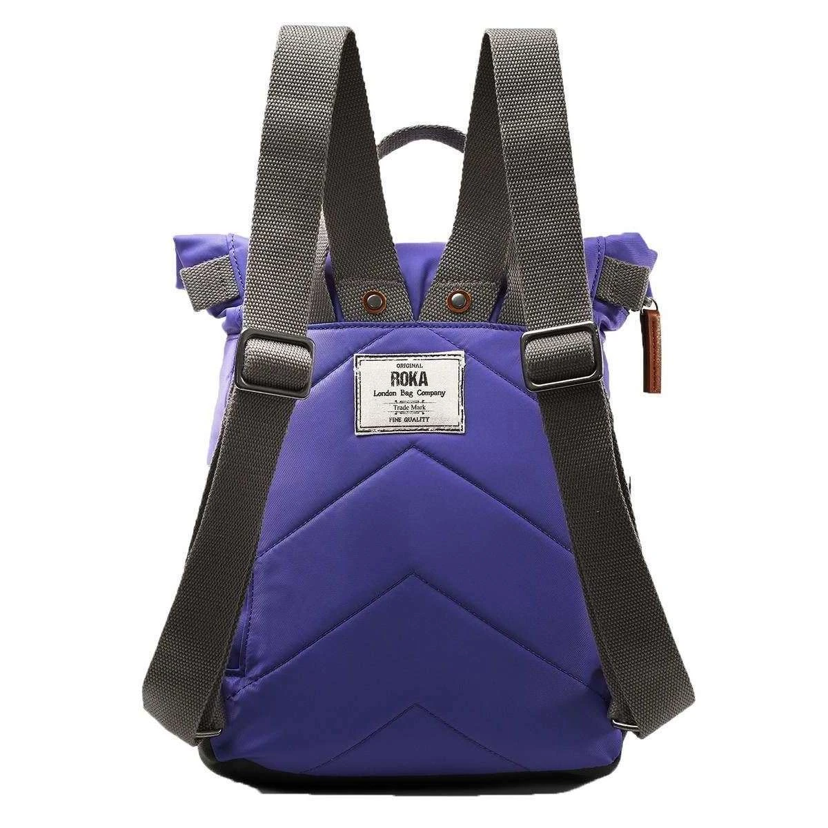 Introducing this unisex canfield b small sustainable nylon backpack by Roka, it is manufactured from 100% weather resistant recycled nylon (triple coated) in a peri purple colour. It measures 33cm(height) x 23.5cm(width) x 9.6cm(depth). All the bags come complete with roka packaging. The Roka Canfield B Small Sustainable Nylon Backpack – Peri Purple is weather-resistant, durable, lightweight and sleek. The roll top design enables the backpack to have a wide mouth opening which is secured with a sturdy zip and magnetic hold, carrying your essentials couldn’t be safer. Featuring a secret wallet pocket and a tablet section, this backpack allows you to carry everything you may need on your day-to-day travels. Carry in complete comfort with the adjustable cotton webbing straps or the twin carry handles. 12 or more plastic bottles are used to make the rPET material for this bag so it is environmentally friendly and also completely vegan.