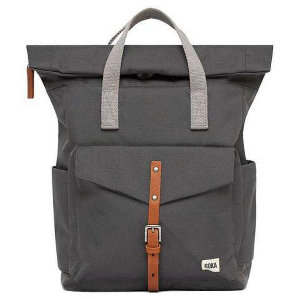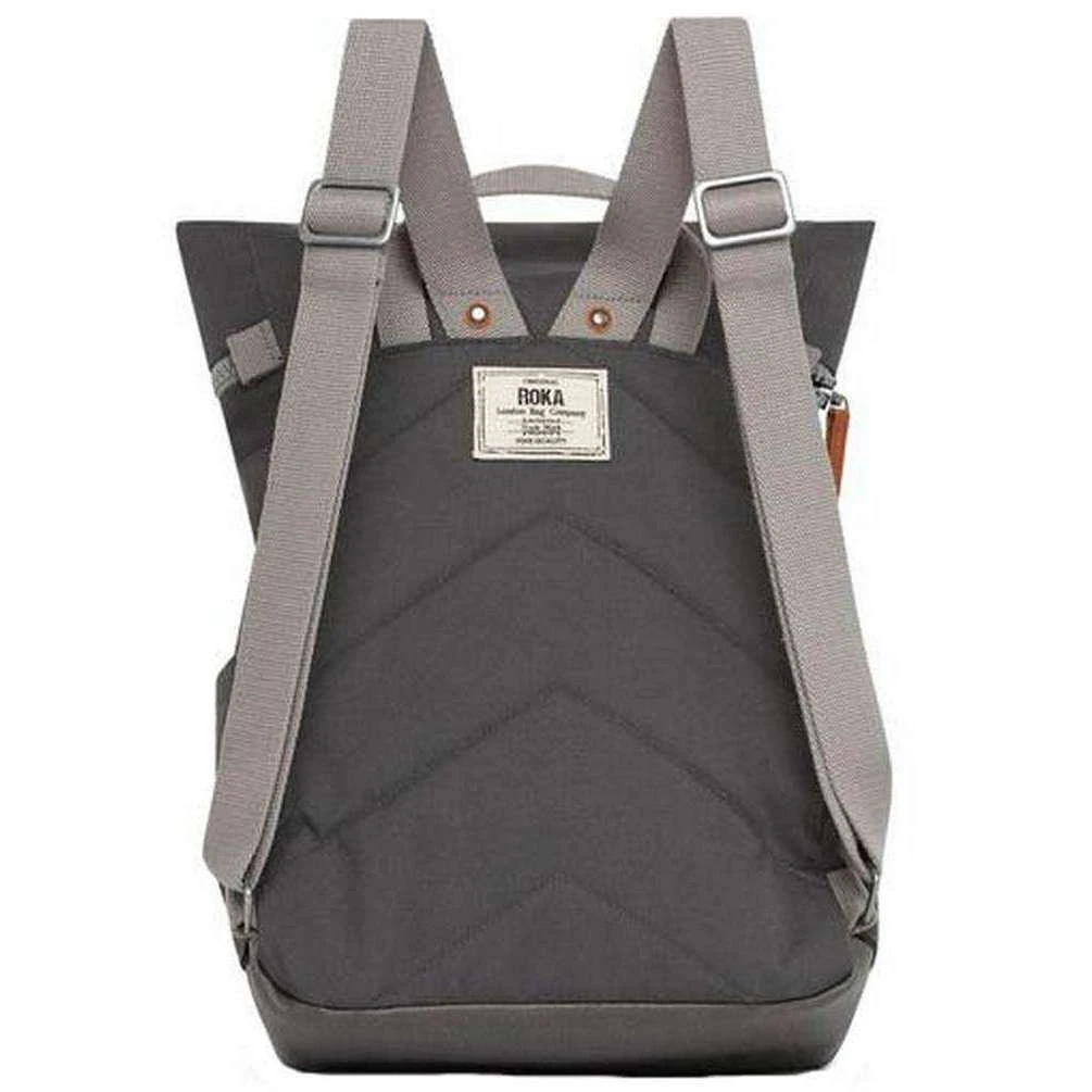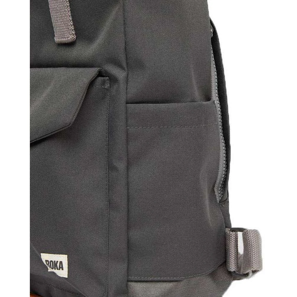 Designer Roka has brought you this unisex recycled polyethylene tetraphyte and nylon bag using carbon grey tones. It measures 42cm(height) x 30cm(width) x 12cm(depth). All the bags come complete with roka packaging. The Roka Canfield C Medium Sustainable Backpack – Carbon Grey has a rolled top design on the bag which enables the bag to have a wide opening to fit valuable goods such as a laptop or iPad device. The bag comes complete with a zipped top so you can fill the bag with goods all the way to the brim. Being a sustainable bag this is made from 12-15 recycled plastic bottles and makes a huge difference to the planet as well as it being durable and lightweight.