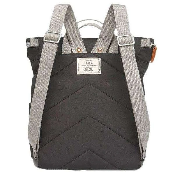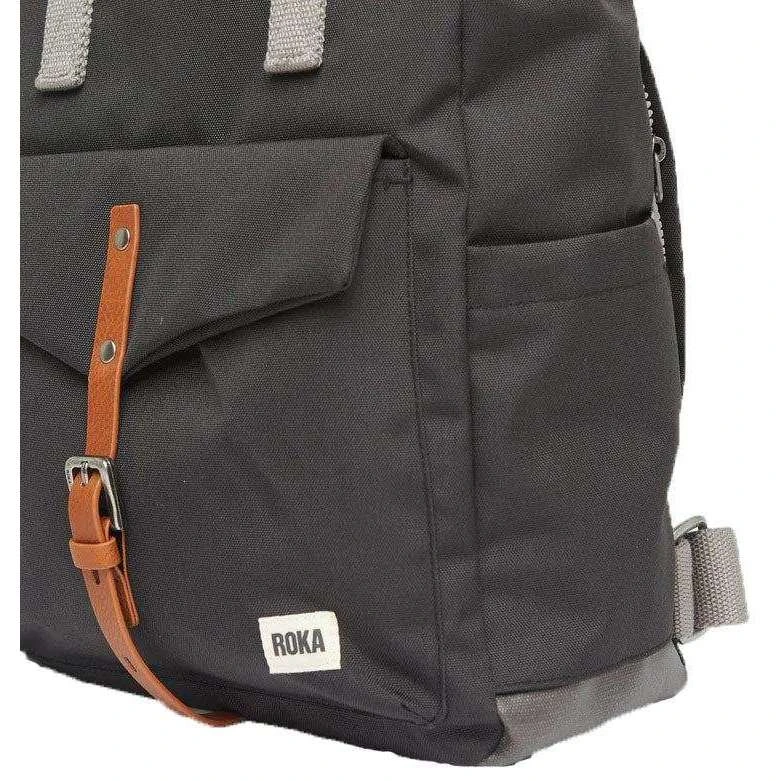 Brought to you by the brand Roka, this ash grey unisex canfield c medium sustainable canvas backpack is made from 100% weather resistant recycled canvas (triple coated). It measures 42cm(height) x 30cm(width) x 12cm(depth). All the bags come complete with roka biodegradable packaging. The Roka Canfield C Medium Sustainable Canvas Backpack – Ash Grey has a secure and innovative closing system consisting of a zip and magnetic hold to keep all your valuables safe and secure. It also has a vegan leather-like strap closure on the front pocket and a secret pocket for your wallet for added protection. Featuring two side pockets for your water bottles and room for a 15” laptop as well as all the other zipped compartments, it is the perfect all round backpack. Crafted from rPET material that is used in plastic bottles which usually ends up in landfill or in the ocean, it has been recycled to give the material new life and protect oceans, it is then coated to make this water resistant. No matter how long your commute is or the weather you face this bag is ideal for any situation and will handle them with ease.