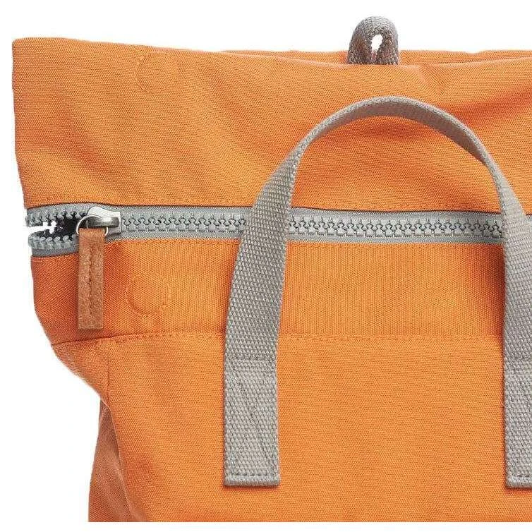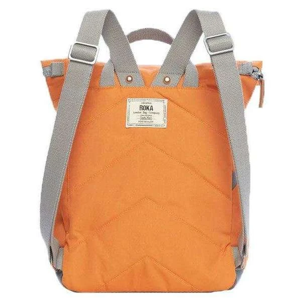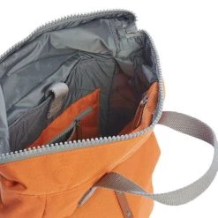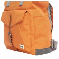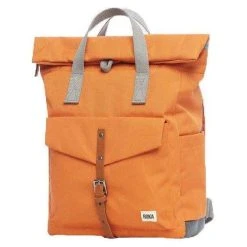 This unisex canfield c medium sustainable canvas backpack has been made from 100% weather resistant recycled canvas (triple coated), featured in a orange colour and is from the brand Roka. It measures 42cm(height) x 30cm(width) x 12cm(depth). All the bags come complete with roka biodegradable packaging. The Roka Canfield C Medium Sustainable Canvas Backpack – Atomic Orange has a secure and innovative closing system consisting of a zip and magnetic hold to keep all your valuables safe and secure. It also has a vegan leather-like strap closure on the front pocket and a secret pocket for your wallet for added protection. Featuring two side pockets for your water bottles and room for a 15” laptop as well as all the other zipped compartments, it is the perfect all round backpack. Crafted from rPET material that is used in plastic bottles which usually ends up in landfill or in the ocean, it has been recycled to give the material new life and protect oceans, it is then coated to make this water resistant. No matter how long your commute is or the weather you face this bag is ideal for any situation and will handle them with ease.