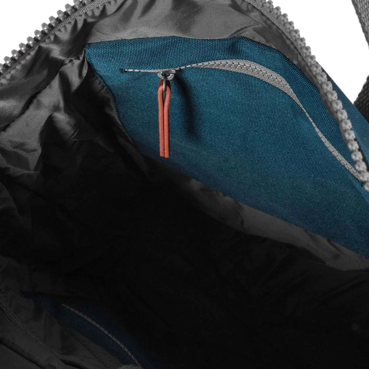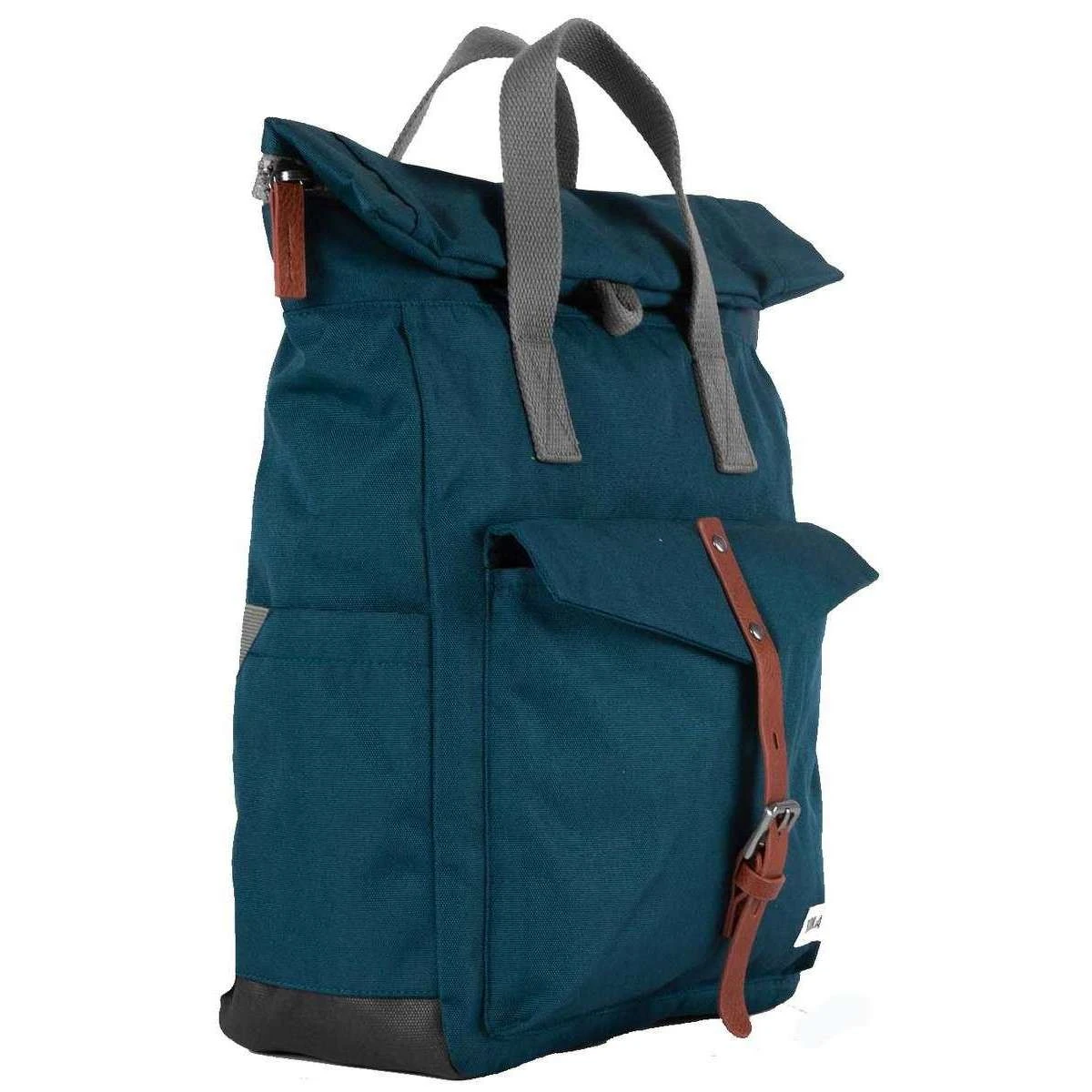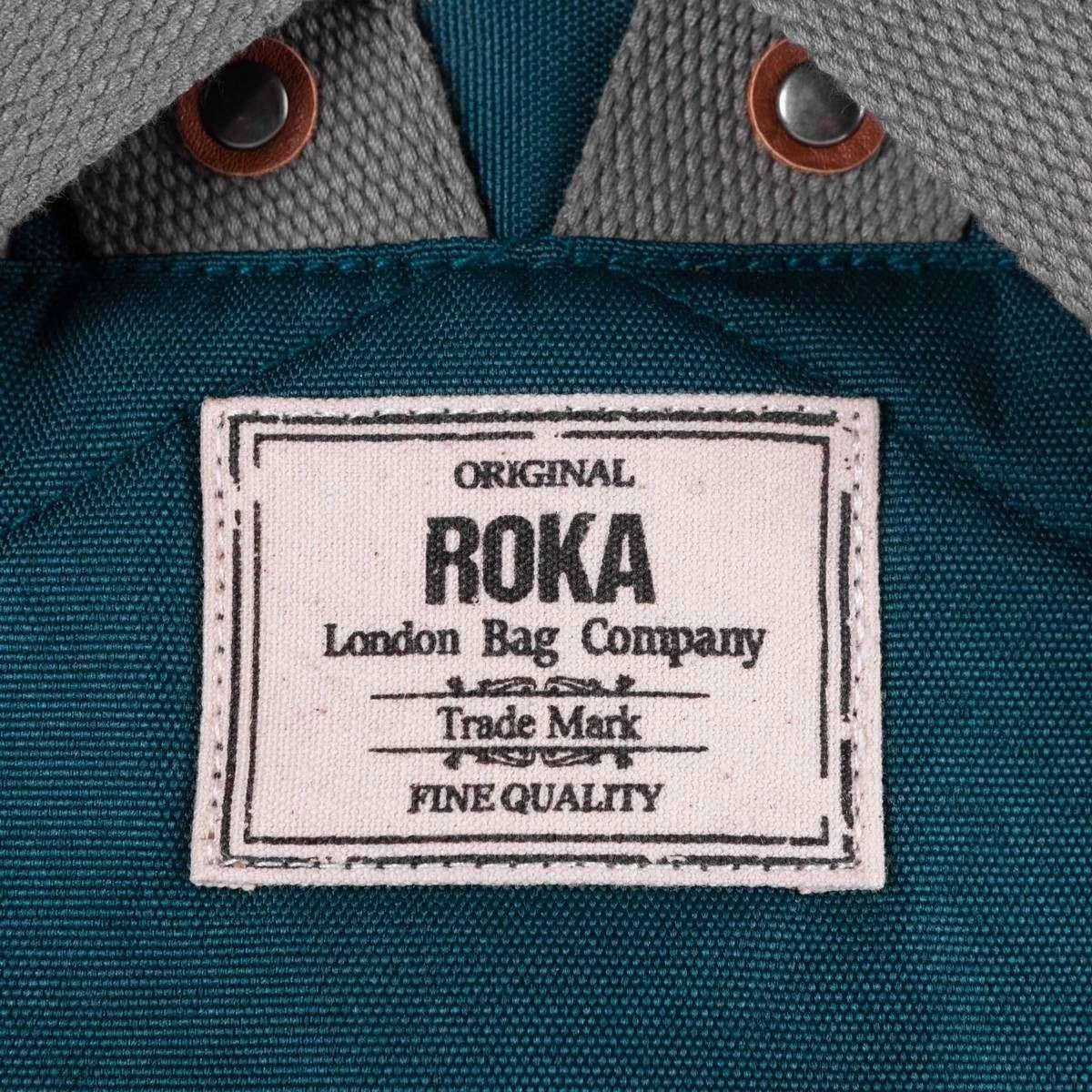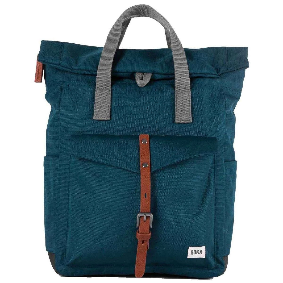 Introducing this unisex canfield c medium sustainable canvas backpack by Roka, it is manufactured from 100% weather resistant recycled canvas (triple coated) in a teal blue colour. It measures 42cm(height) x 30cm(width) x 12cm(depth). All the bags come complete in roka packaging. The Roka Canfield C Medium Sustainable Canvas Backpack – Teal Blue has a secure and innovative closing system consisting of a zip and magnetic hold to keep all your valuables safe and secure. It also has a vegan leather-like strap closure on the front pocket and a secret pocket for your wallet for added protection. Featuring two side pockets for your water bottles and room for a 15” laptop as well as all the other zipped compartments, it is the perfect all round backpack. Crafted from rPET sustainable nylon that is used in plastic bottles which usually ends up in landfill or in the ocean, it has been recycled to give the material new life and protect oceans, it is also lightweight and water-resistant. No matter how long your commute is or the weather you face this bag is ideal for any situation and will handle them with ease.