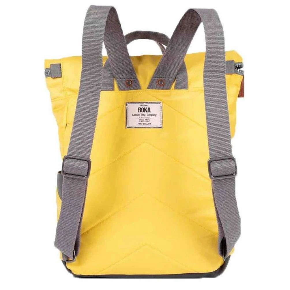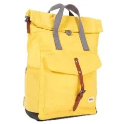 Manufactured from 100% weather resistant recycled nylon (triple coated) is this lemon yellow unisex canfield c medium sustainable nylon backpack by the designer Roka. It measures 42cm(height) x 30cm(width) x 12cm(depth). All the bags come complete with roka biodegradable packaging. The Roka Canfield C Medium Sustainable Nylon Backpack – Lemon Yellow has a secure and innovative closing system consisting of a zip and magnetic hold to keep all your valuables safe and secure. It also has a vegan leather-like strap closure on the front pocket and a secret pocket for your wallet for added protection. Featuring two side pockets for your water bottles and room for a 15” laptop as well as all the other zipped compartments, it is the perfect all round backpack. Crafted from rPET sustainable nylon that is used in plastic bottles which usually ends up in landfill or in the ocean, it has been recycled to give the material new life and protect oceans, it is also lightweight and water-resistant. No matter how long your commute is or the weather you face this bag is ideal for any situation and will handle with ease.