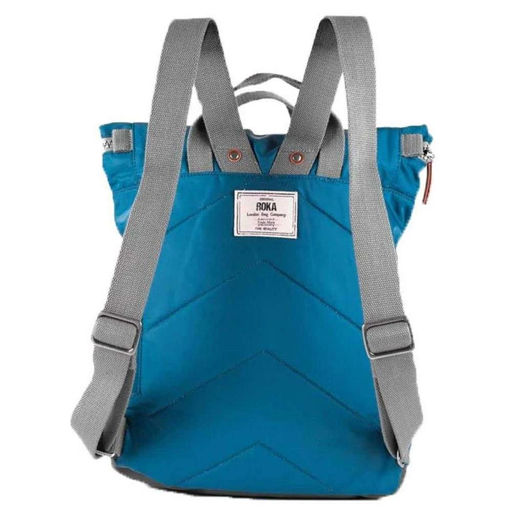 This well made unisex canfield c medium sustainable nylon backpack from Roka comes in a marine navy colour and is manufactured from 100% weather resistant recycled nylon (triple coated). It measures 42cm(height) x 30cm(width) x 12cm(depth). All the bags come complete with roka biodegradable packaging. The Roka Canfield C Medium Sustainable Nylon Backpack – Marine Navy has a secure and innovative closing system consisting of a zip and magnetic hold to keep all your valuables safe and secure. It also has a vegan leather-like strap closure on the front pocket and a secret pocket for your wallet for added protection. Featuring two side pockets for your water bottles and room for a 15” laptop as well as all the other zipped compartments, it is the perfect all round backpack. Crafted from rPET sustainable nylon that is used in plastic bottles which usually ends up in landfill or in the ocean, it has been recycled to give the material new life and protect oceans, it is also lightweight and water-resistant. No matter how long your commute is or the weather you face this bag is ideal for any situation and will handle with ease.
