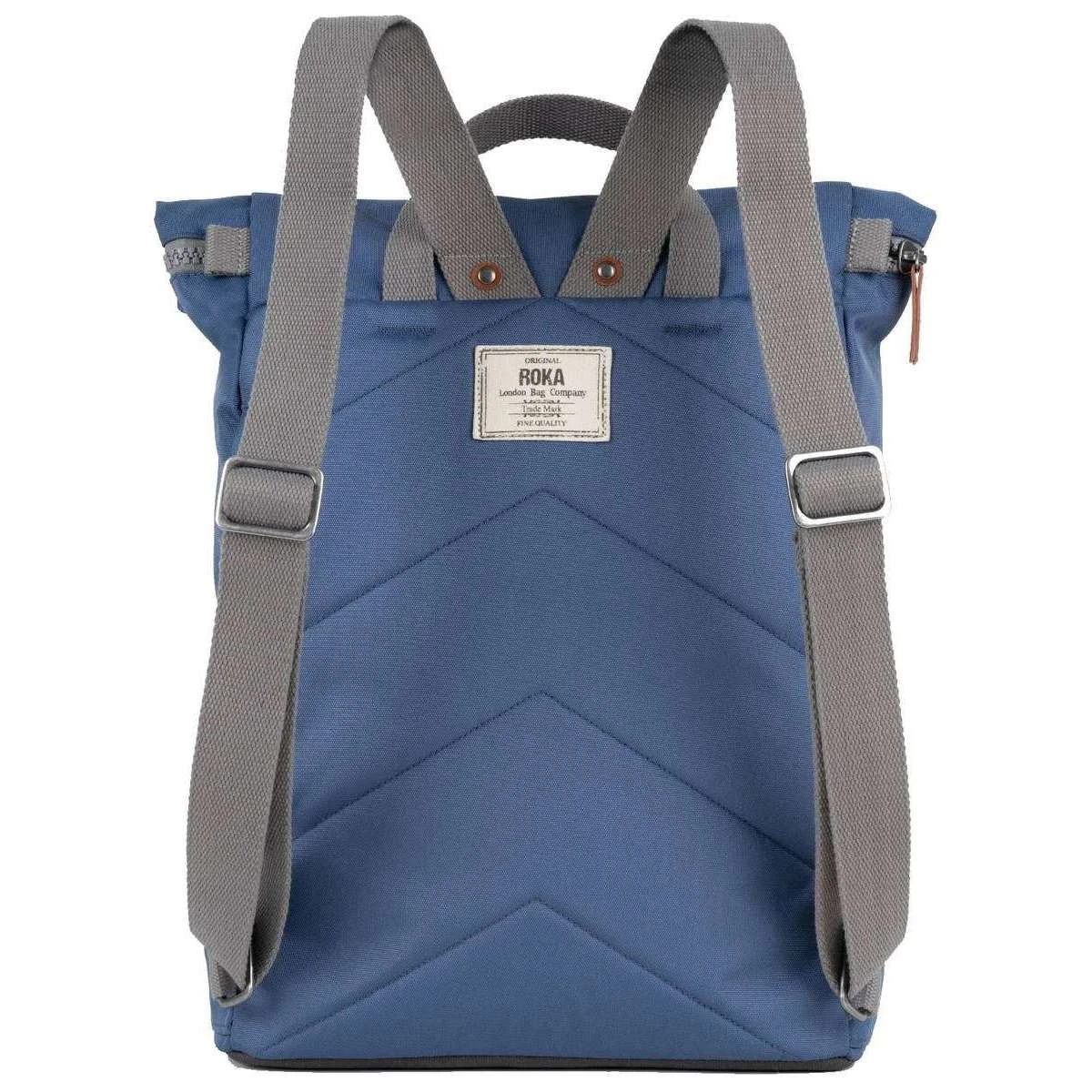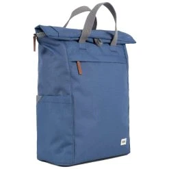 Introducing this unisex finchley a large sustainable canvas backpack by Roka, it is manufactured from 100% weather resistant recycled canvas (triple coated) in a burnt blue colour. It measures 45cm(height) x 32cm(width) x 14.5cm(depth). All the bags come complete in roka packaging. The Roka Finchley A Large Sustainable Canvas Backpack – Burnt Blue holds and organises an impressive number of items, all within the roll-top design. Water-resistant and crafted from rPet materials, this backpack is sustainable, vegan and kind to the environment. There is a lightly padded laptop pocket that will fit your devices up to 17″ and the extra storage space holds a change of clothes, water bottle, snacks and more! The zip pocket on the front is perfect for things you need to access quickly whilst on the move. The back padding and cotton straps provide comfort to the back and shoulders for comfortable carrying, perfect for everyday use.