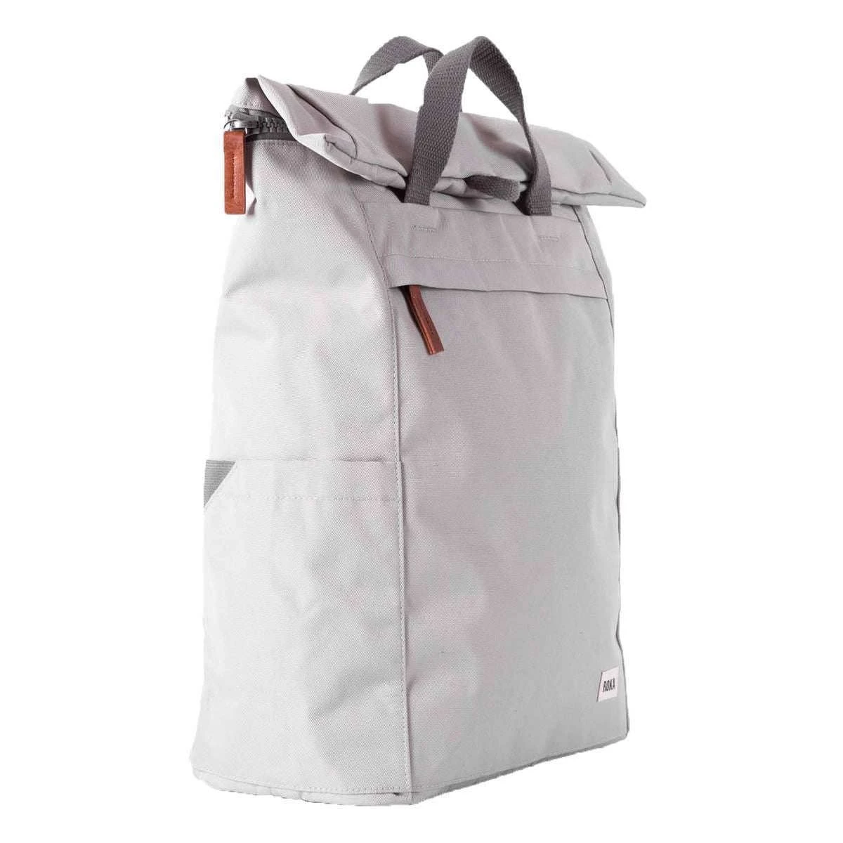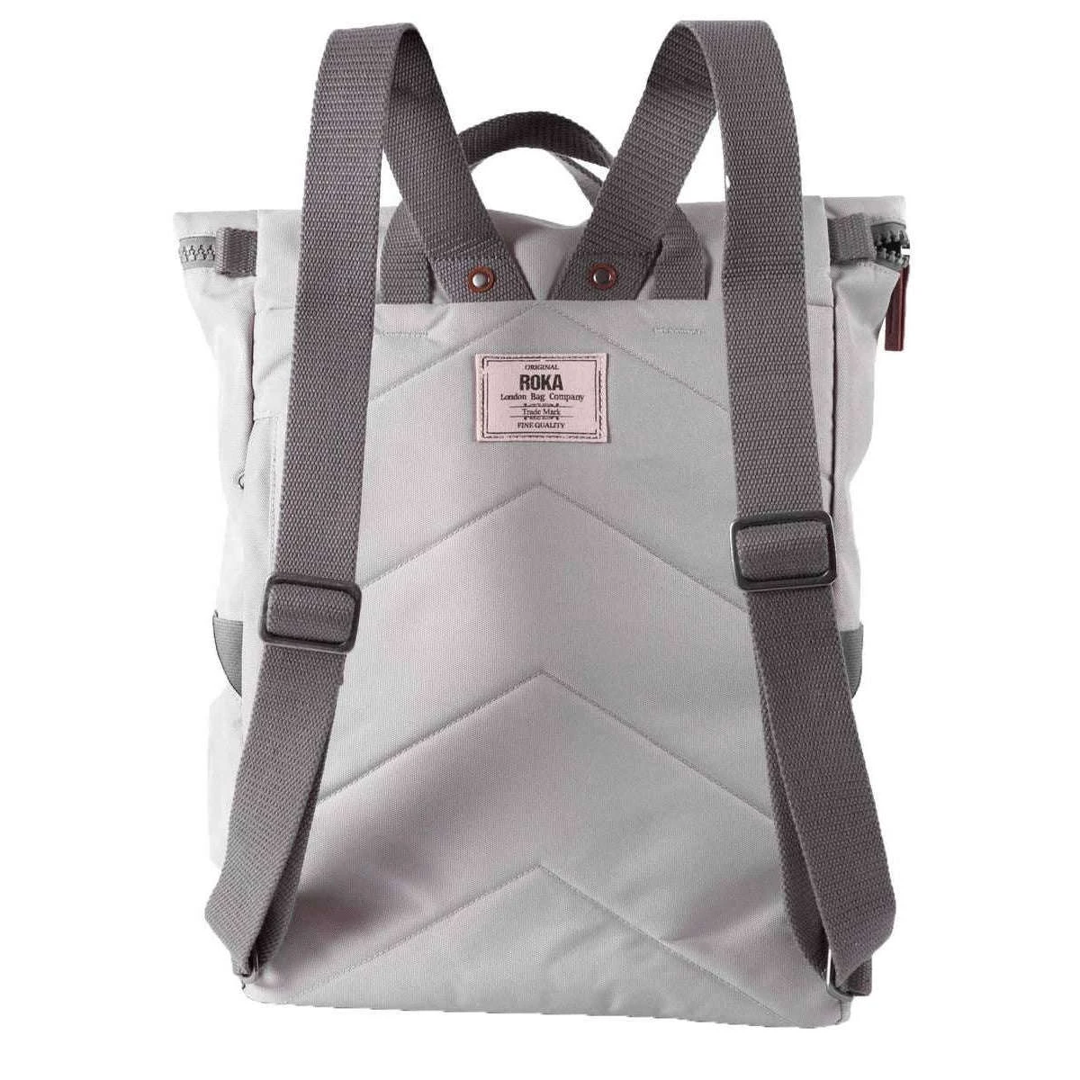 Perfect for men or women is this Roka mist grey finchley a large sustainable canvas backpack, it is also made from 100% weather resistant recycled canvas (triple coated). It measures 45cm(height) x 32cm(width) x 14.5cm(depth). All the bags come complete with roka packaging. The Roka Finchley A Large Sustainable Canvas Backpack – Mist Grey holds and organises an impressive number of items, all within the roll-top design. Water-resistant and crafted from rPet materials, this backpack is sustainable, vegan and kind to the environment. There is a lightly padded laptop pocket that will fit your devices up to 17″ and the extra storage space holds a change of clothes, water bottle, snacks and more! The zip pocket on the front is perfect for things you need to access quickly whilst on the move. The back padding and cotton straps provide comfort to the back and shoulders for comfortable carrying, perfect for everyday use.