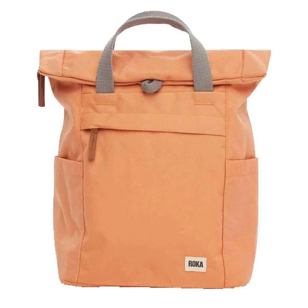 This unisex finchley a medium sustainable canvas backpack has been made from 100% weather resistant recycled canvas (triple coated), featured in a orange colour and is from the brand Roka. It measures 42cm(height) x 28cm(width) x 13cm(depth). All the bags come complete with roka packaging. The Roka Finchley A Medium Sustainable Canvas Backpack – Apricot Orange holds and organises an impressive number of items, all within the roll-top design. Water-resistant and crafted from rPet materials, this backpack is sustainable, vegan and kind to the environment. There is a lightly padded laptop pocket that will fit your devices up to 17″ and the extra storage space holds a change of clothes, water bottle, snacks and more! The zip pocket on the front is perfect for things you need to access quickly whilst on the move. The back padding and cotton straps provide comfort to the back and shoulders for comfortable carrying, perfect for everyday use.